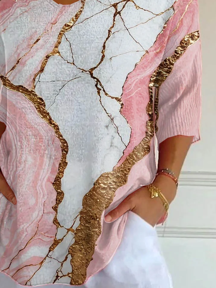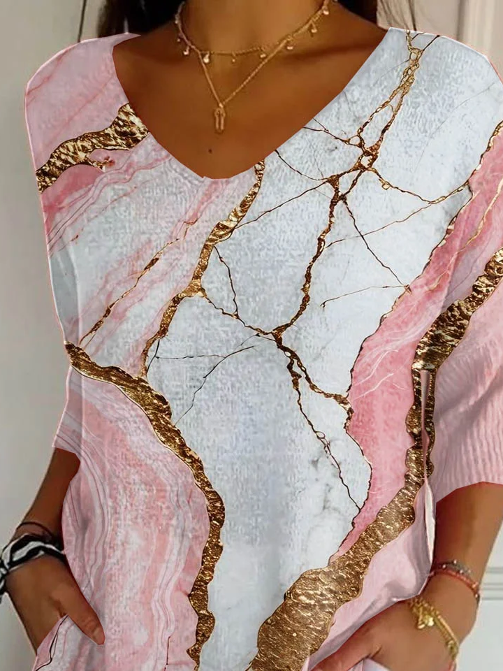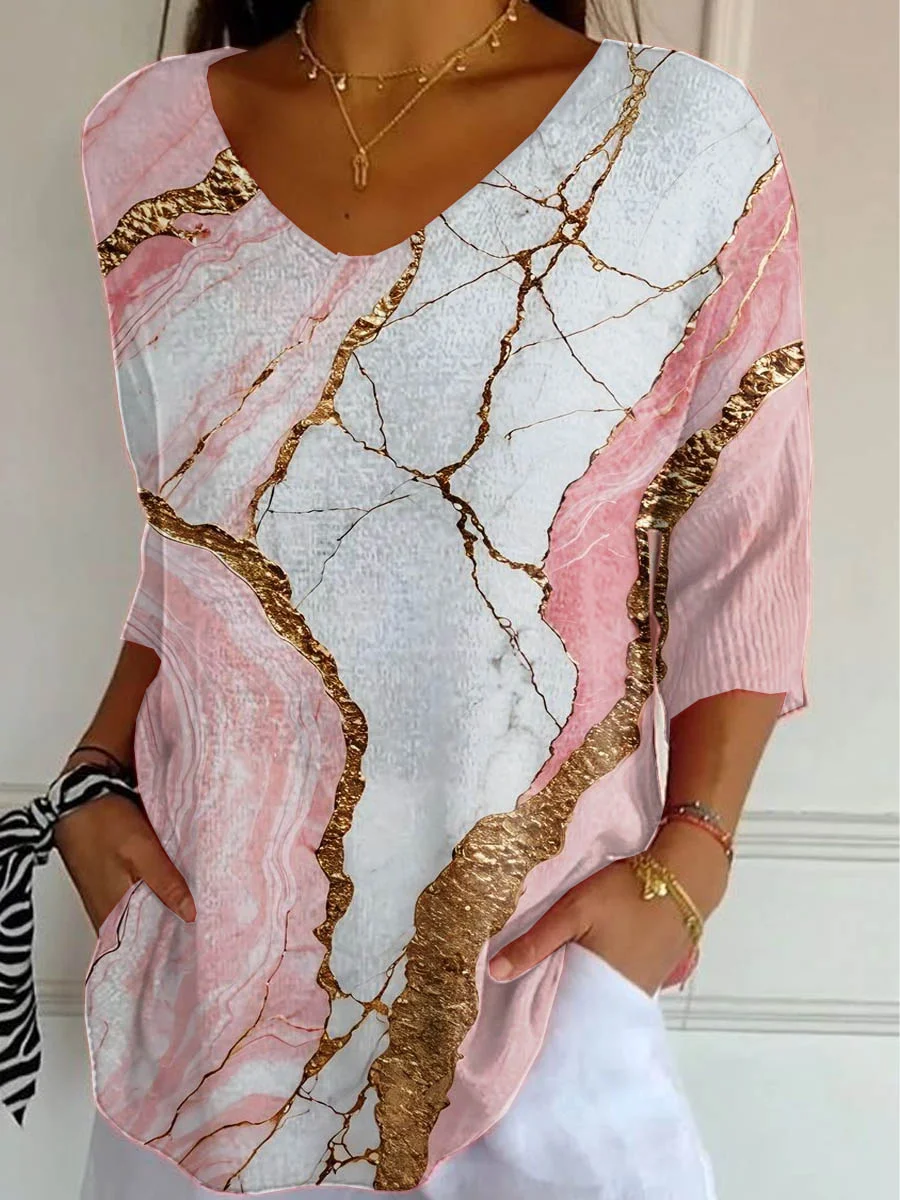 Women's Three Quarter Sleeve T-shirt Spring/Fall Pink Abstract Printing V Neck Daily Going Out Casual Top