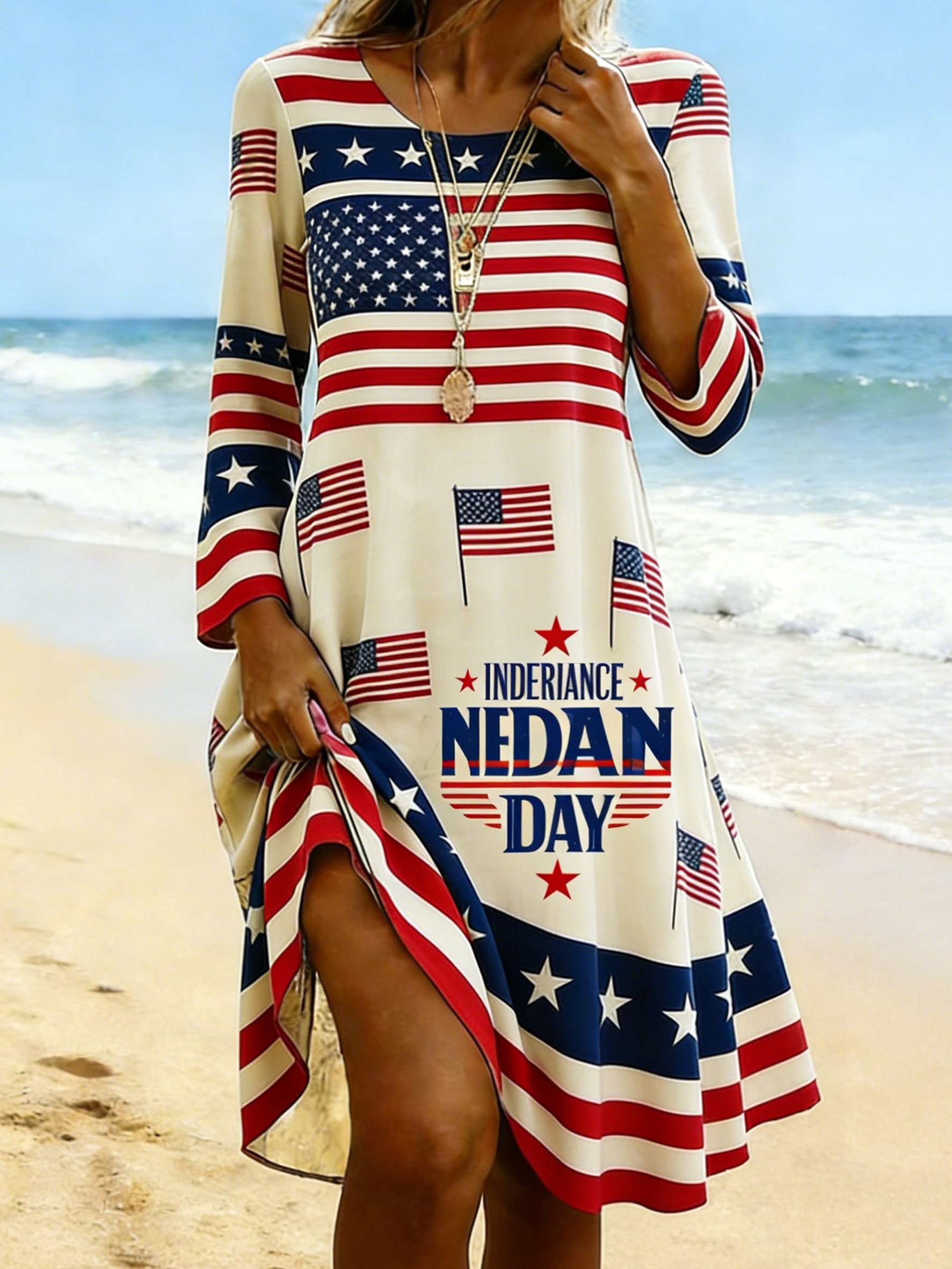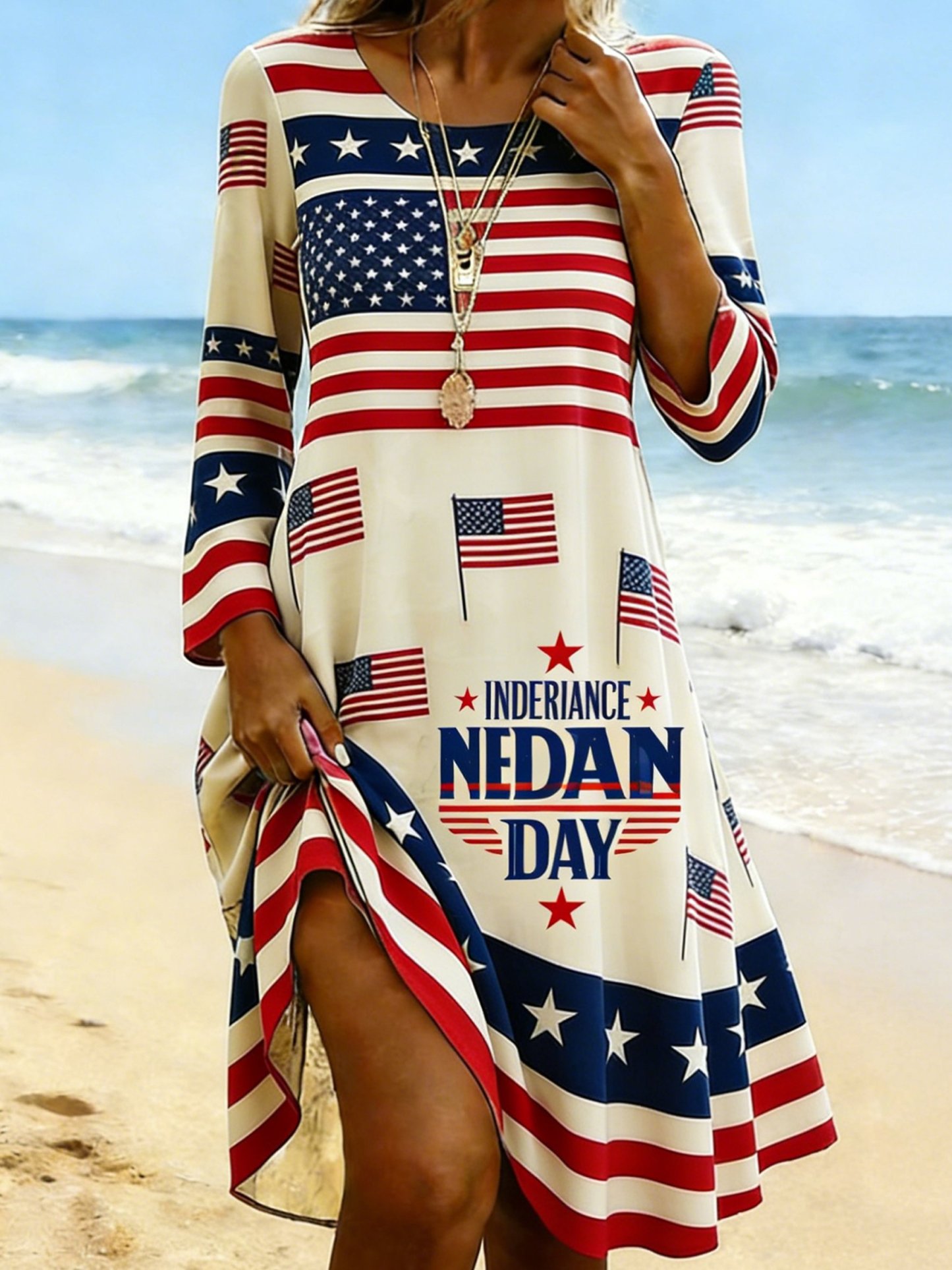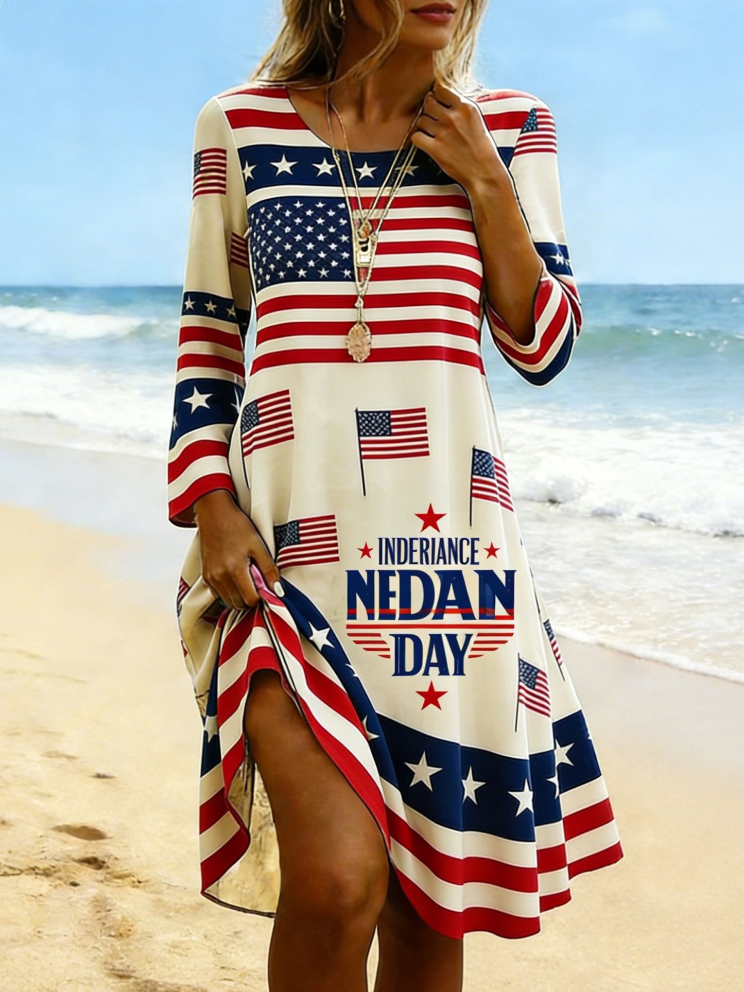 Women Spring Summer Dress America Flag Crew Neck 250th Anniversary Dress