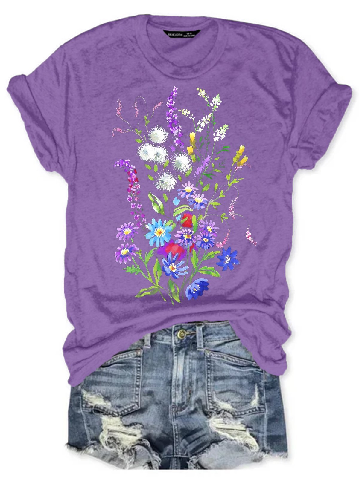 Womens Flower Print Casual Short Sleeve T-Shirt