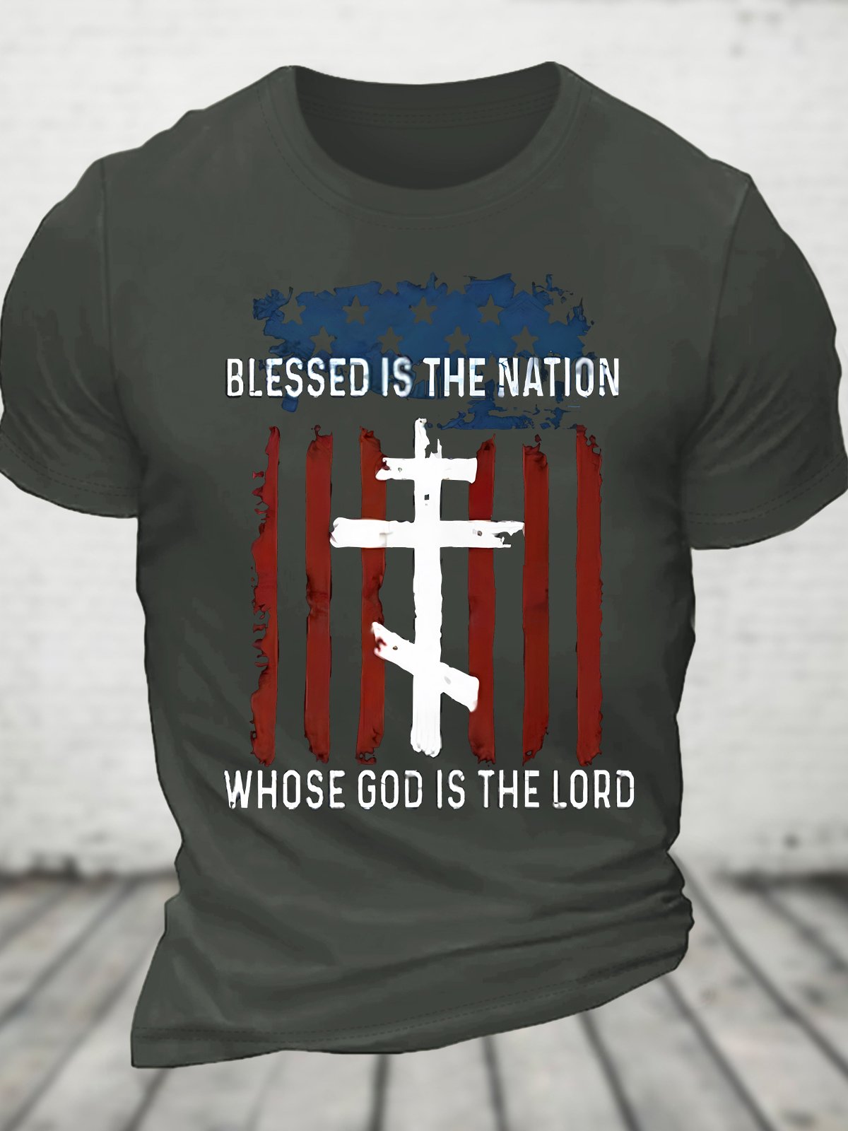 Blessed Nation Psalm 33 22 4th of July Cotton T-shirt