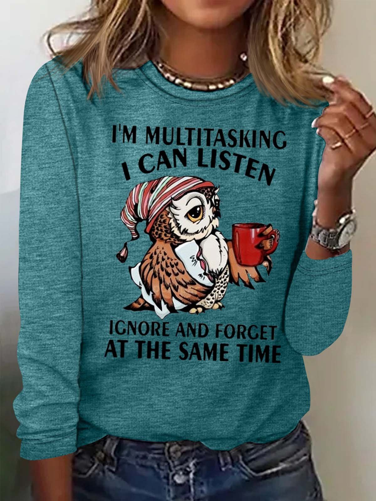 Women's Funny I'm Multitasking Letters Crew Neck Casual Top