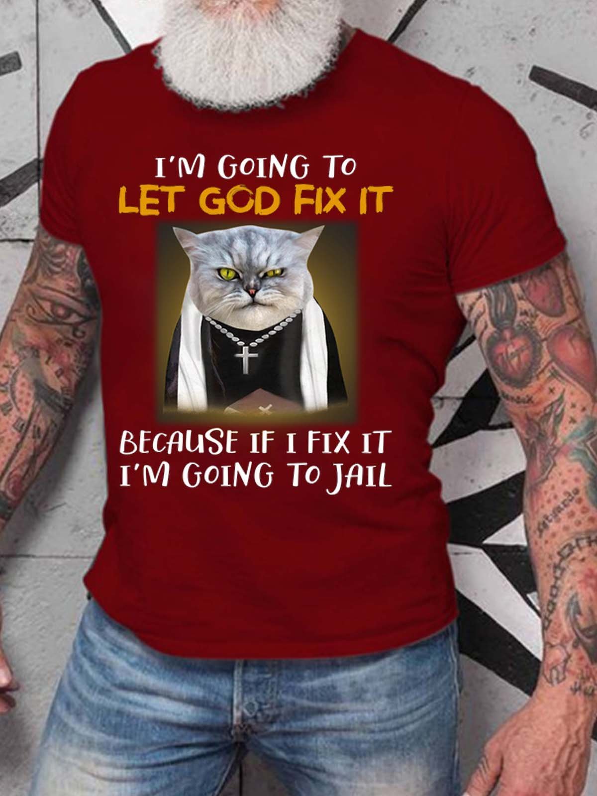 Men Let God Fix It Letters Casual T-Shirt