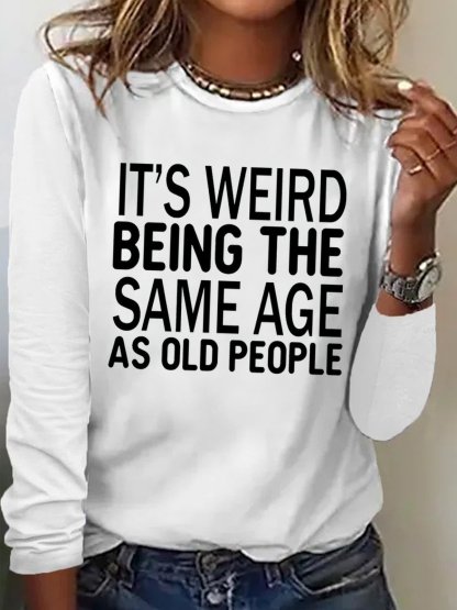 Women's It's Weird Being The Same Age As Old People Funny Graphic Print Cotton-Blend Regular Fit Casual Text Letters Top