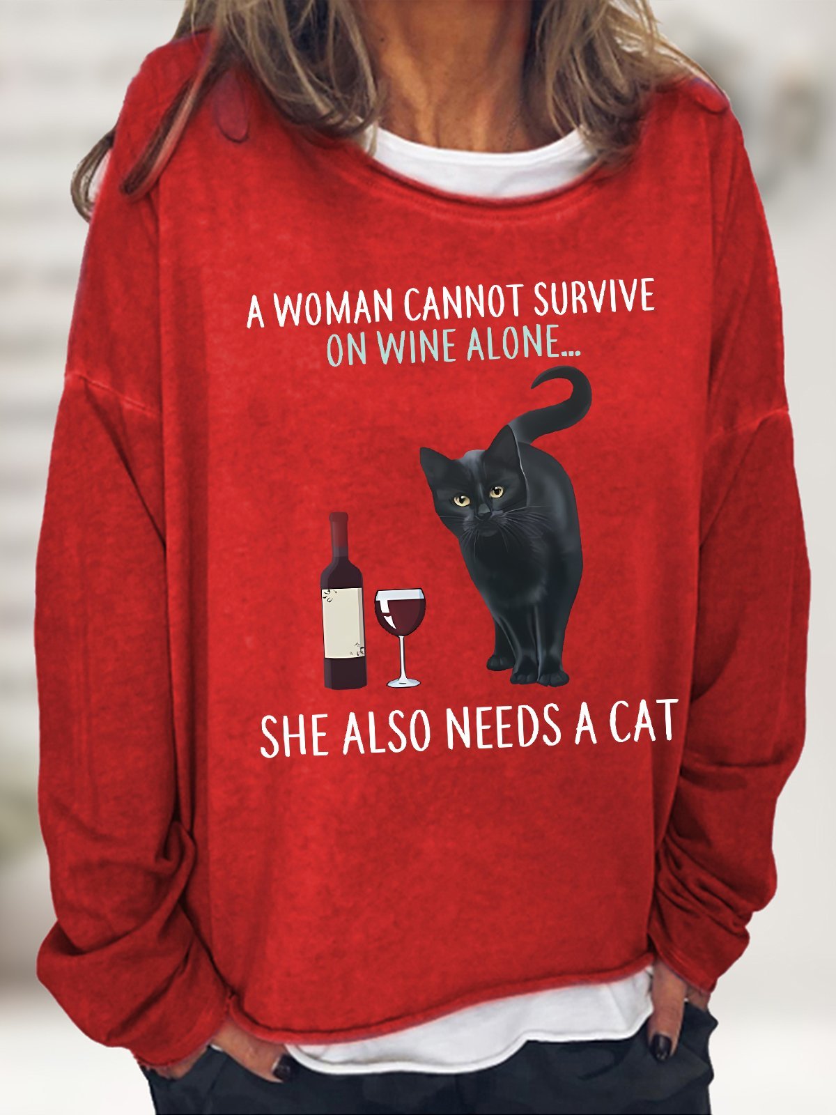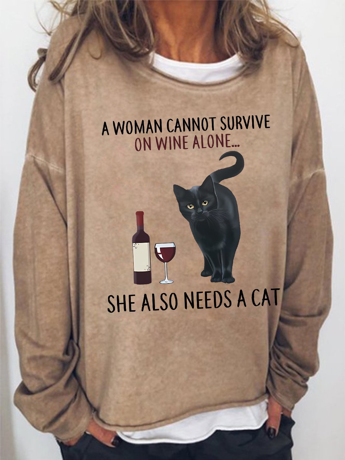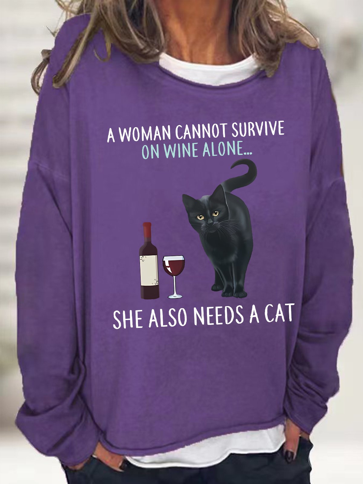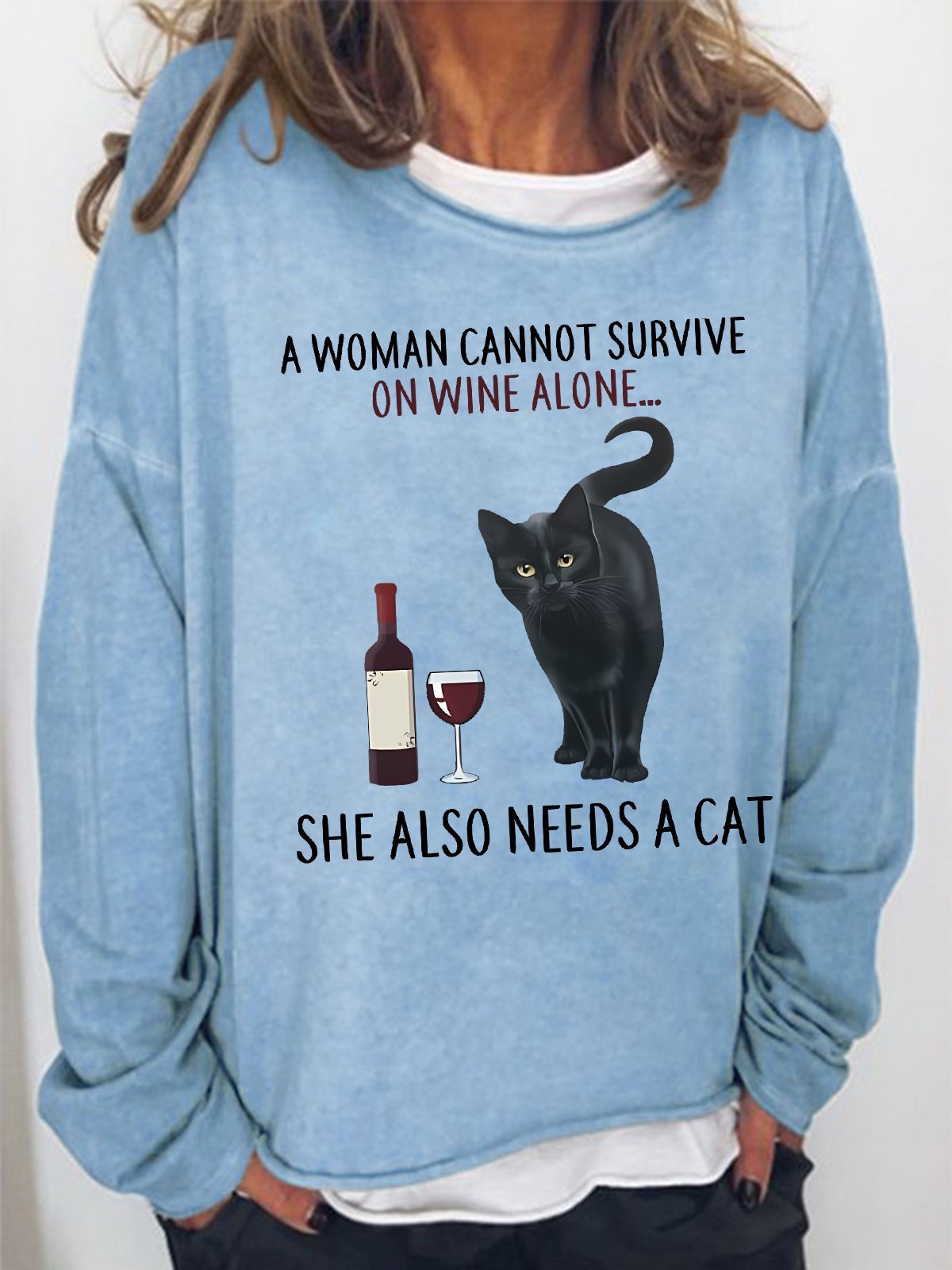 Women's Funny A Women Need A Cat Black Cat Graphic Casual Sweatshirt