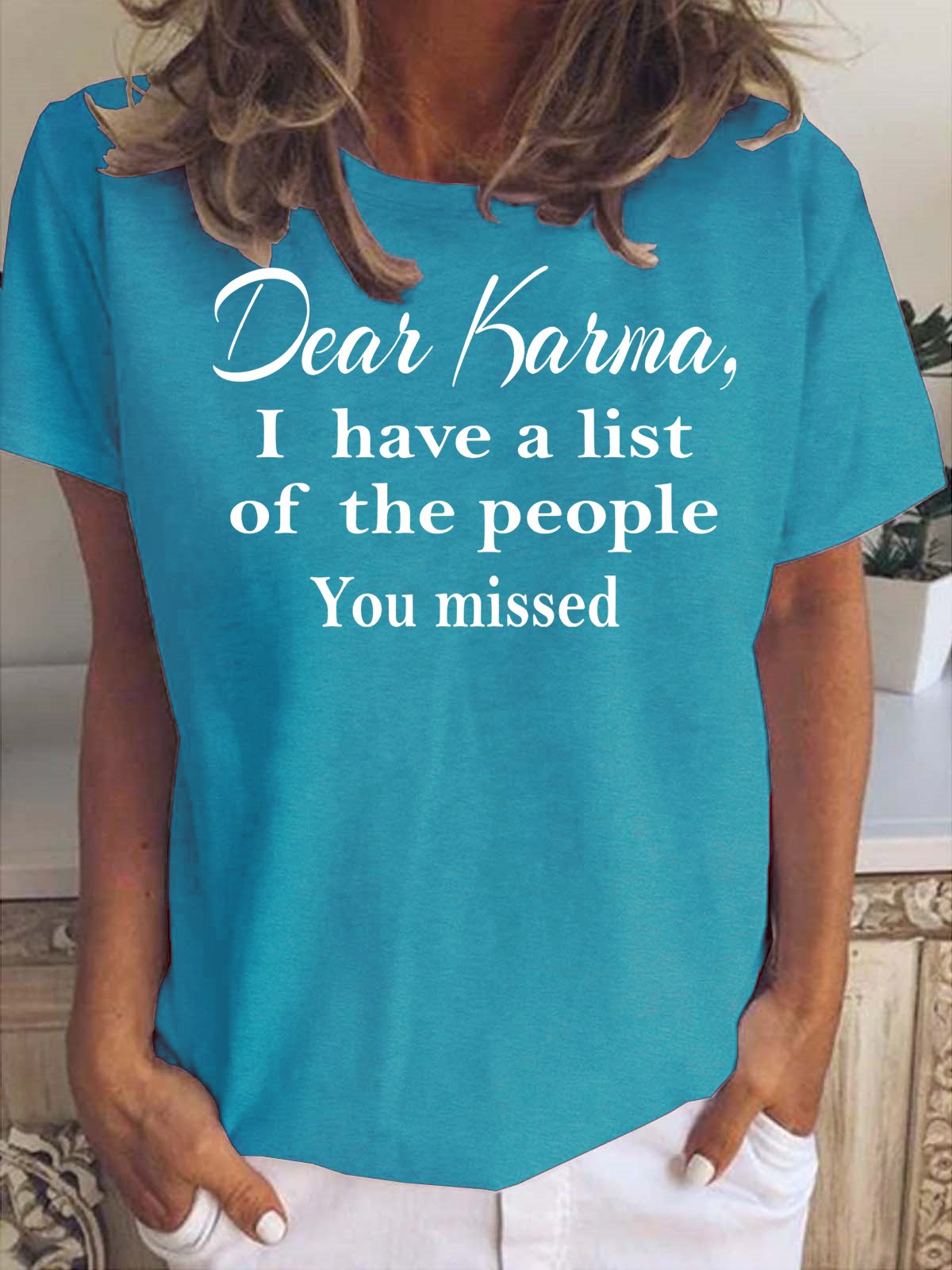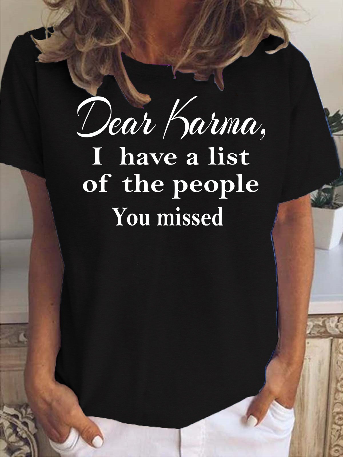 DEAR KARMA, I HAVE A LIST OF THE PEOPLE YOU MISSED Casual Short sleeve tops