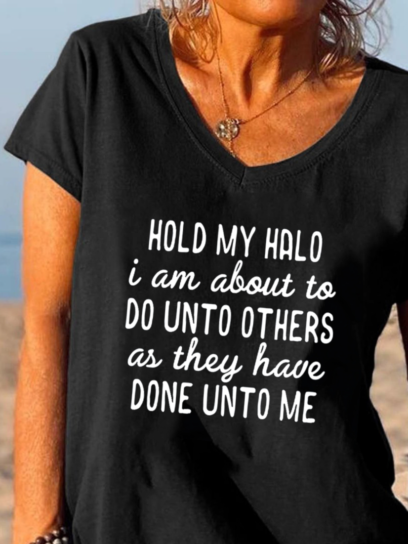 Funny text print v-neck short sleeve T-shirt
