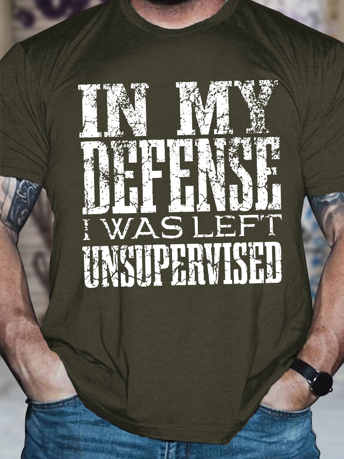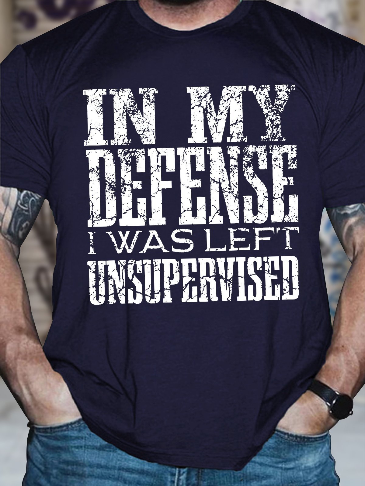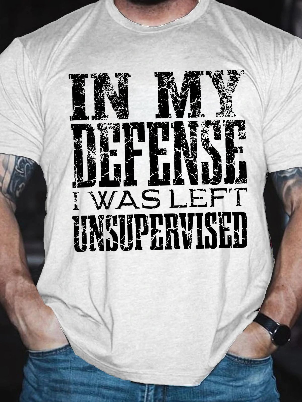 Men's Funny In My Defense I Was Left Unsupervised Graphic Printing Text Letters Cotton Casual Crew Neck T-Shirt