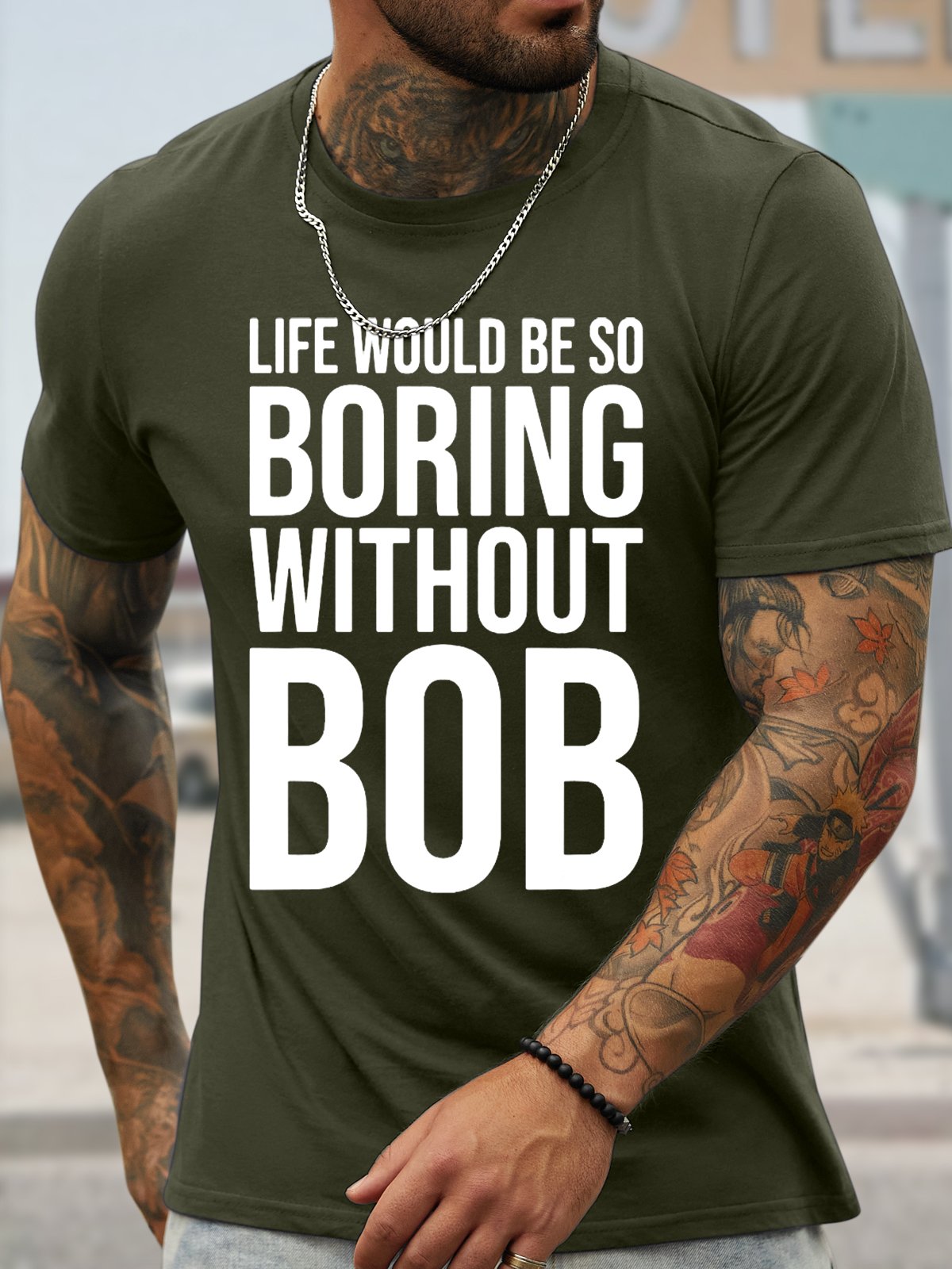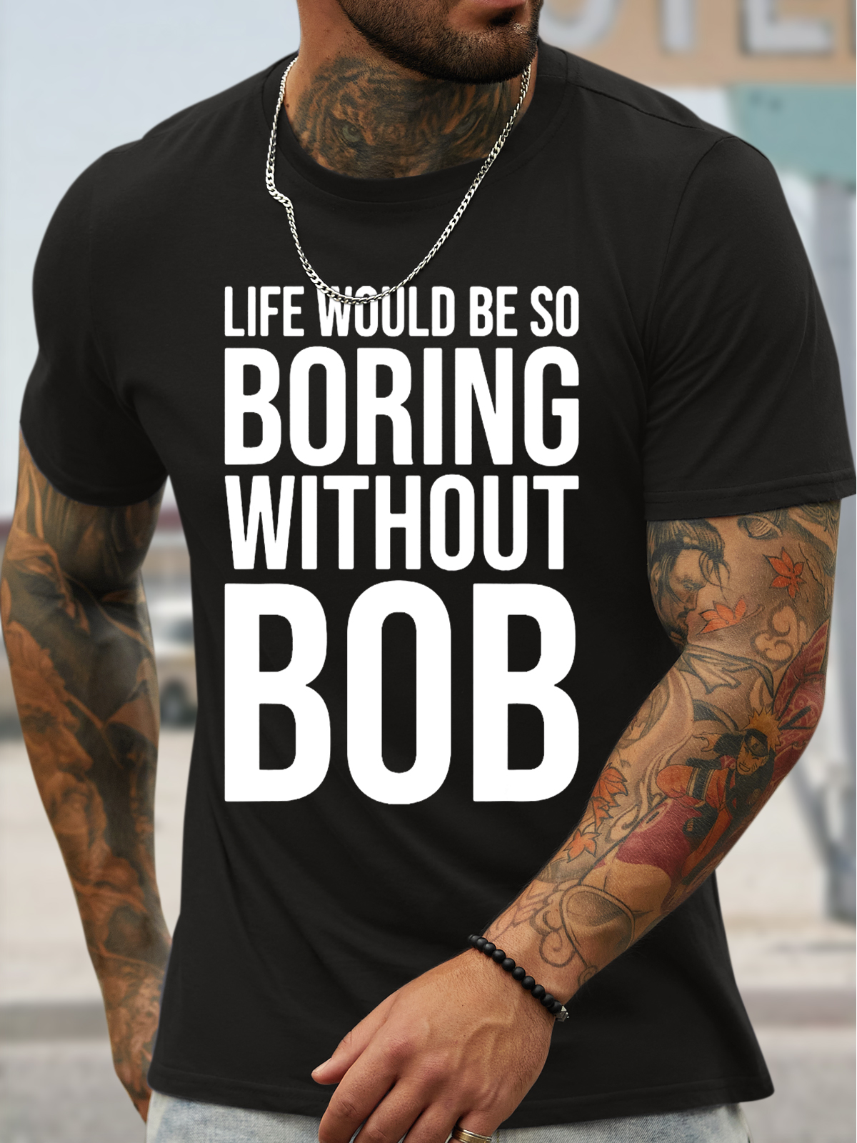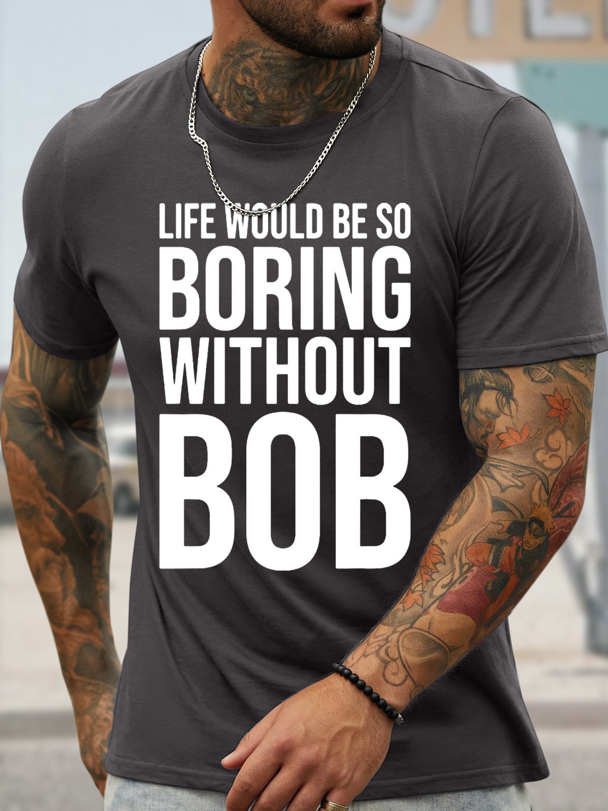 Men's Funny Life Would Be So Boring Without Bob Graphic Printing Casual Crew Neck Cotton T-Shirt