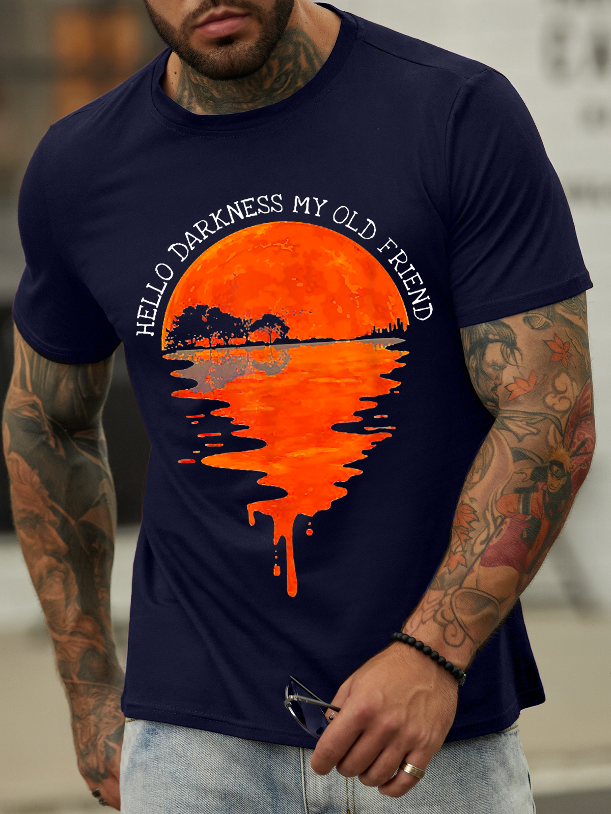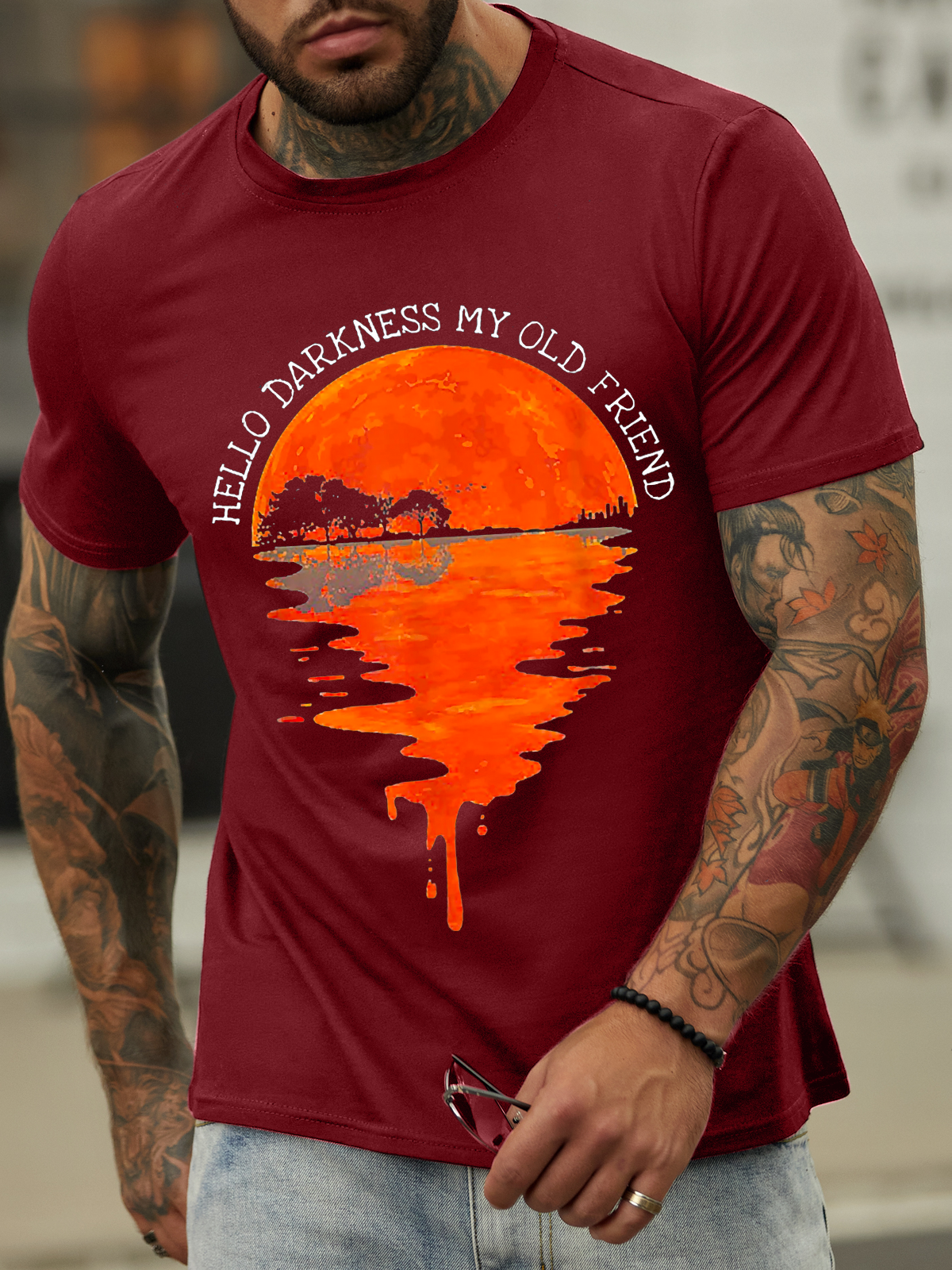 Men's Hello Darkness My Old Friend Hippie Cotton-Blend Crew Neck Text Letters Casual T-Shirt