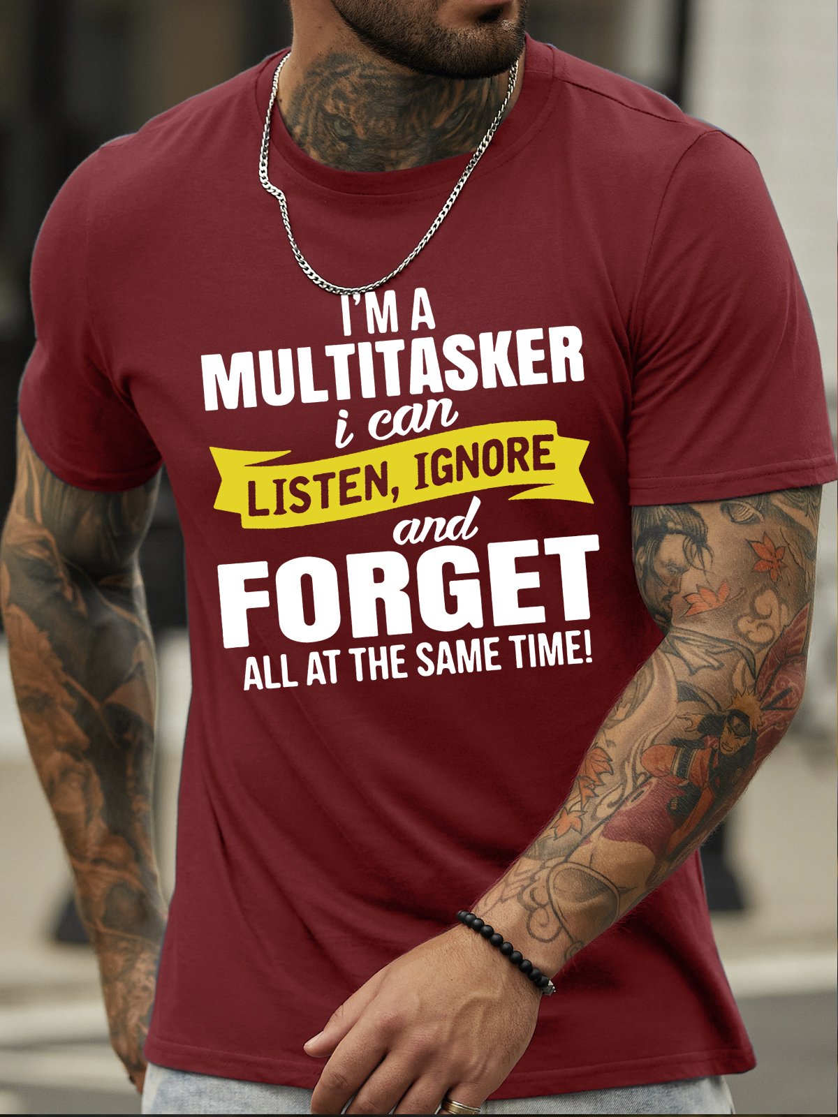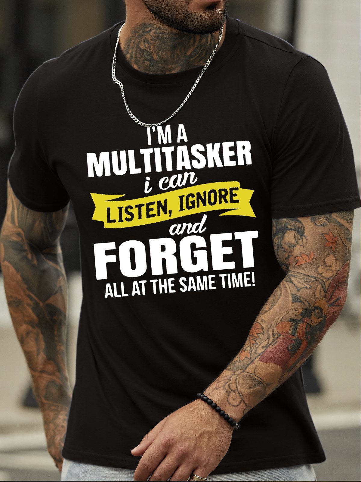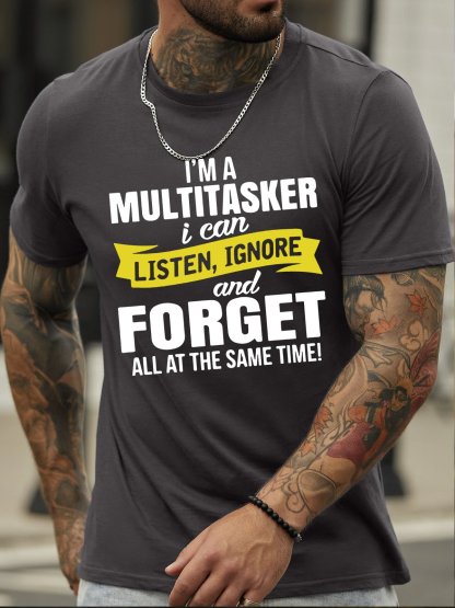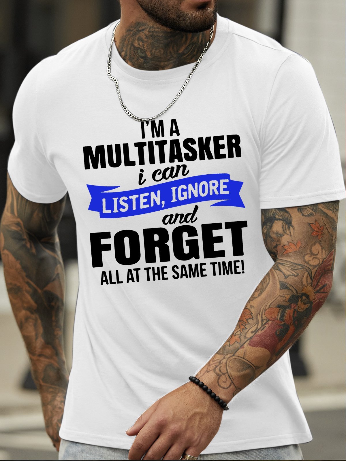 Men’s I'm A Multitasker Crew Neck Text Letters Regular Fit Casual T-Shirt