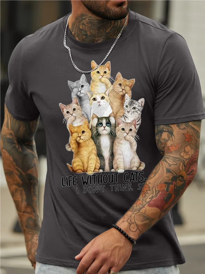 Men’s Life Without Cats I don't Think So Casual Cotton T-Shirt