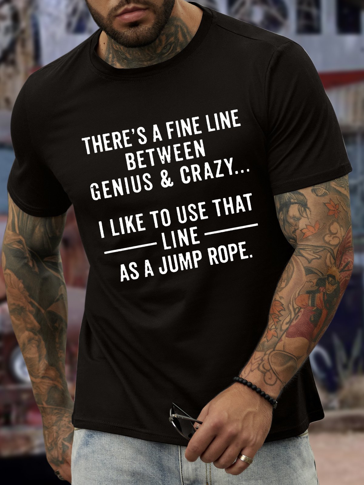 Men’s There's A Fine Line Between Genius & Crazy I Like To Use That Line As A Jump Rope Cotton Casual T-Shirt