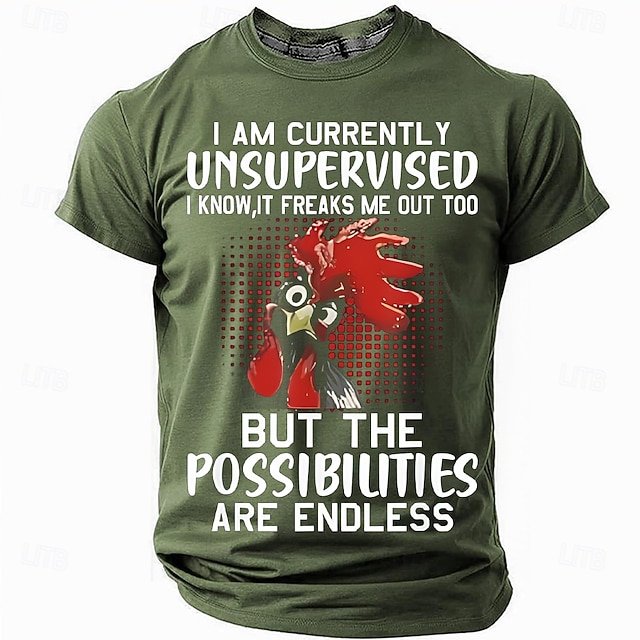 Men’s Unsupervised Possibilities Rooster Funny Graphic Short Sleeve T-Shirt
