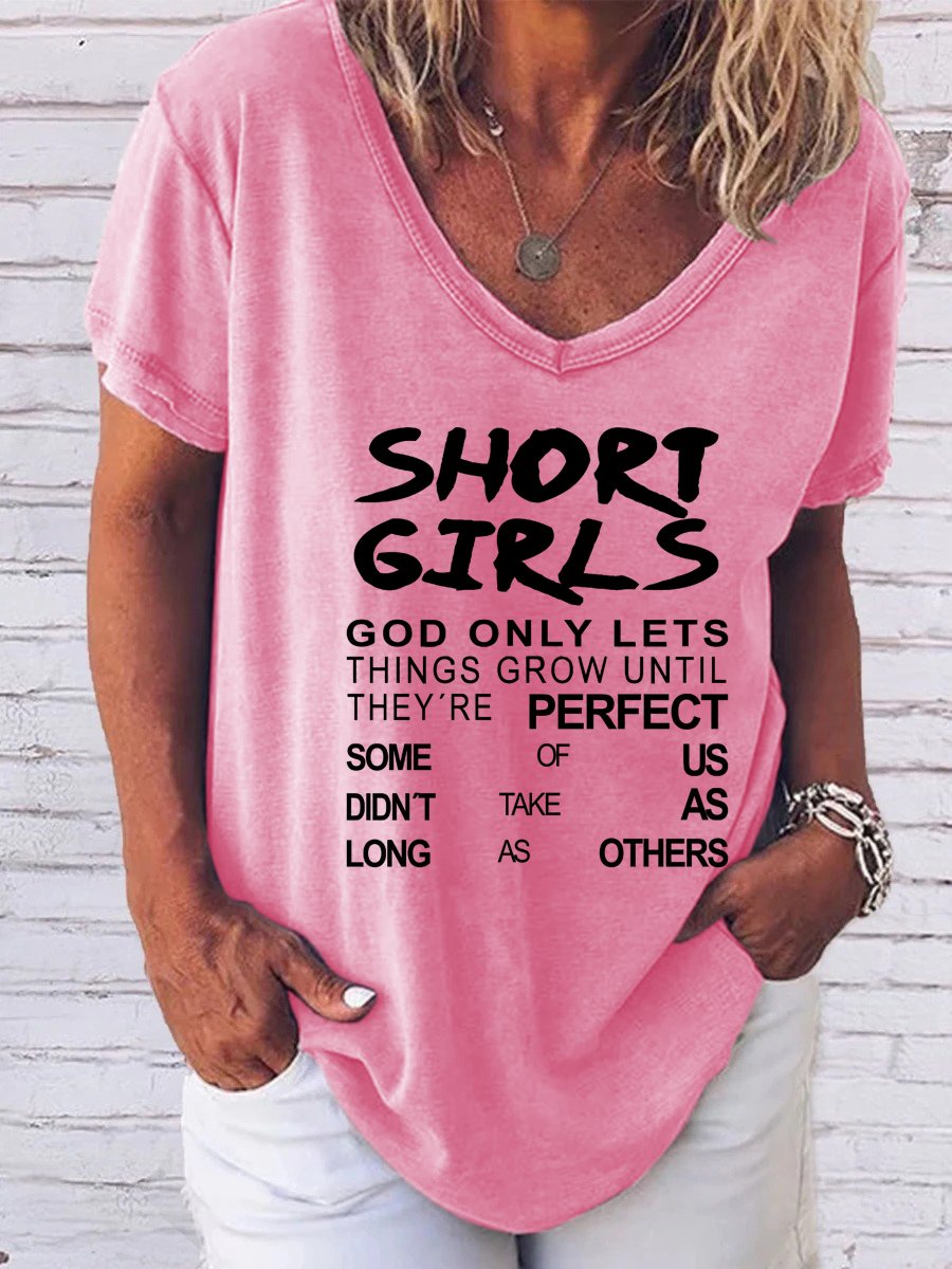Short Girls Fun Print V-Neck Short Sleeve T-Shirt