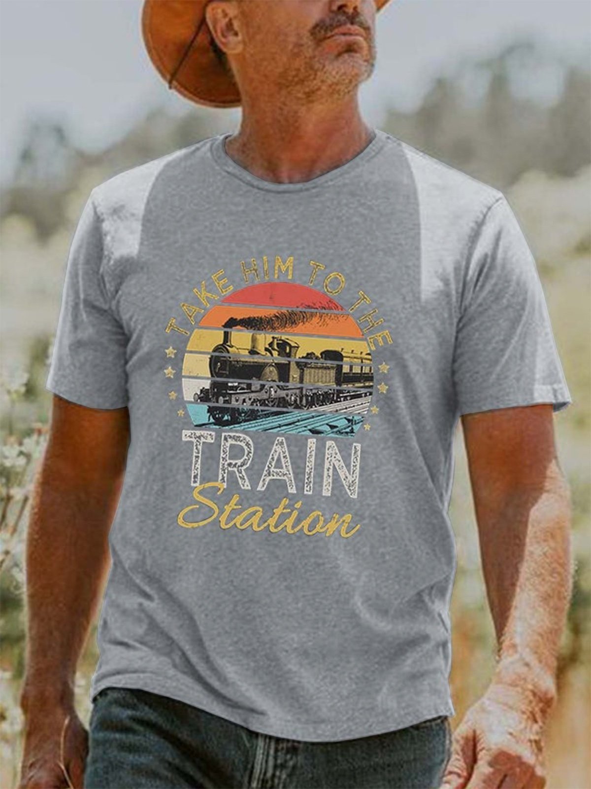 Take Him To The Train Station Short Sleeve Crew Neck Casual T-shirt