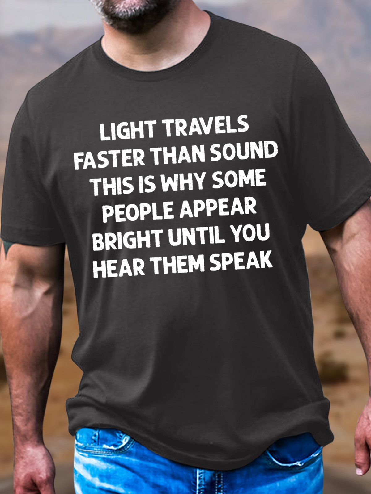 Men's Cotton Light Travels Faster Than Sound Crew Neck Casual T-Shirt