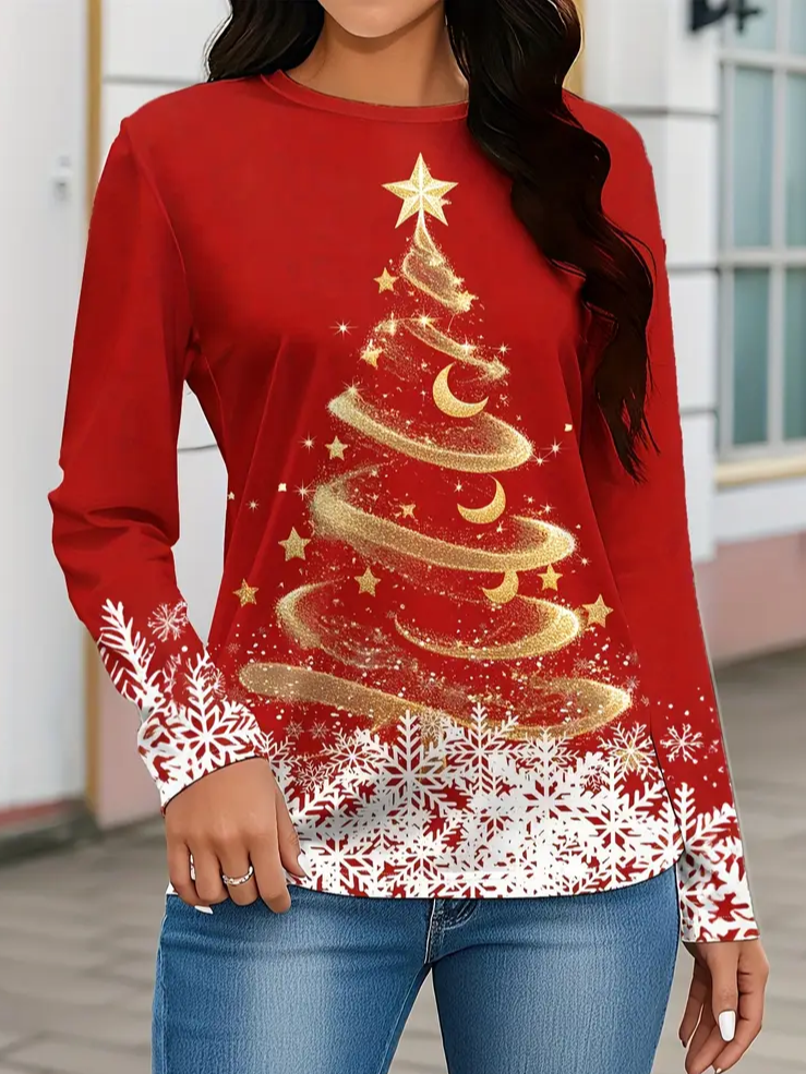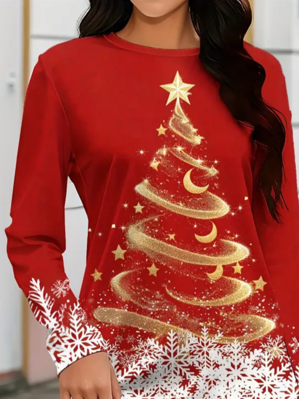 Women's Long Sleeve T-shirt Spring/Fall Red Christmas Printing Jersey Crew Neck Daily Going Out Casual Top