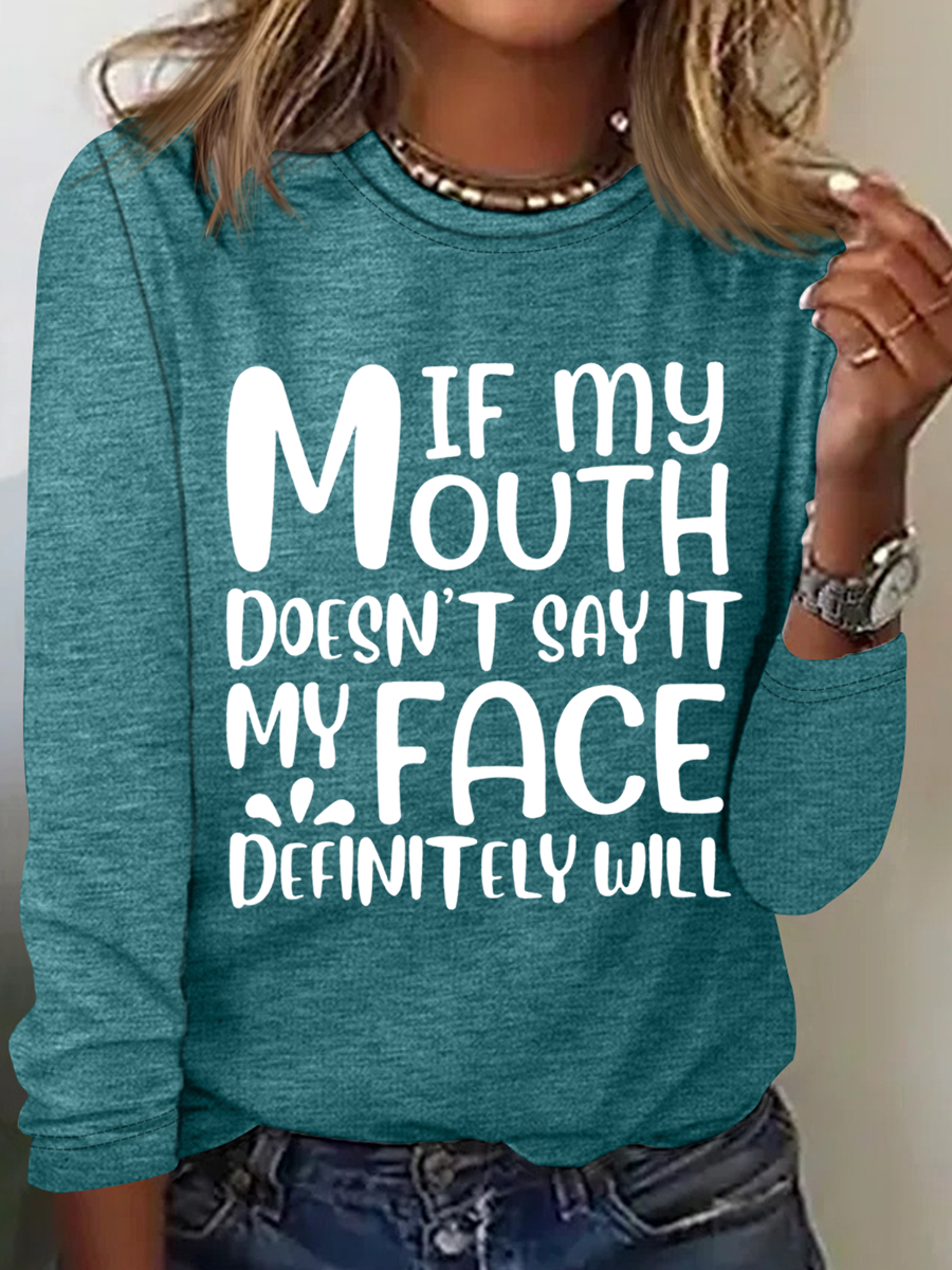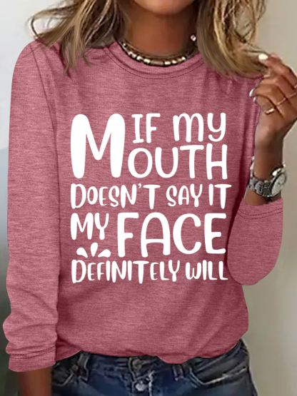 Women's Funny Sarcastic If My Mouth Doesn't Say It My Face Definitely Will Long Sleeve Top