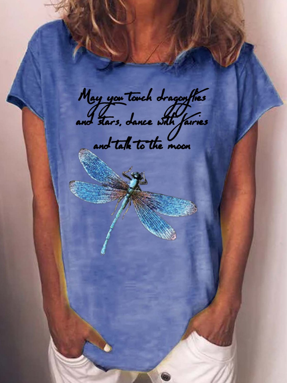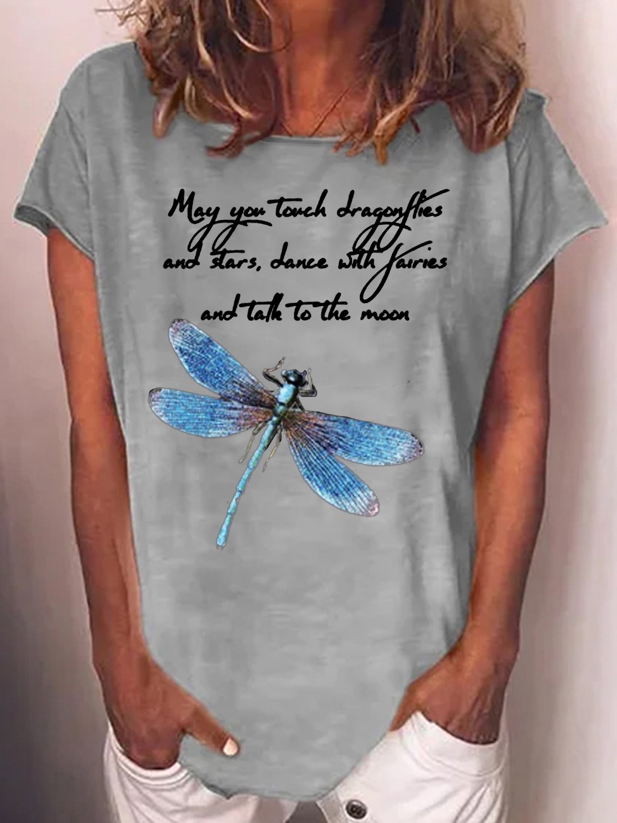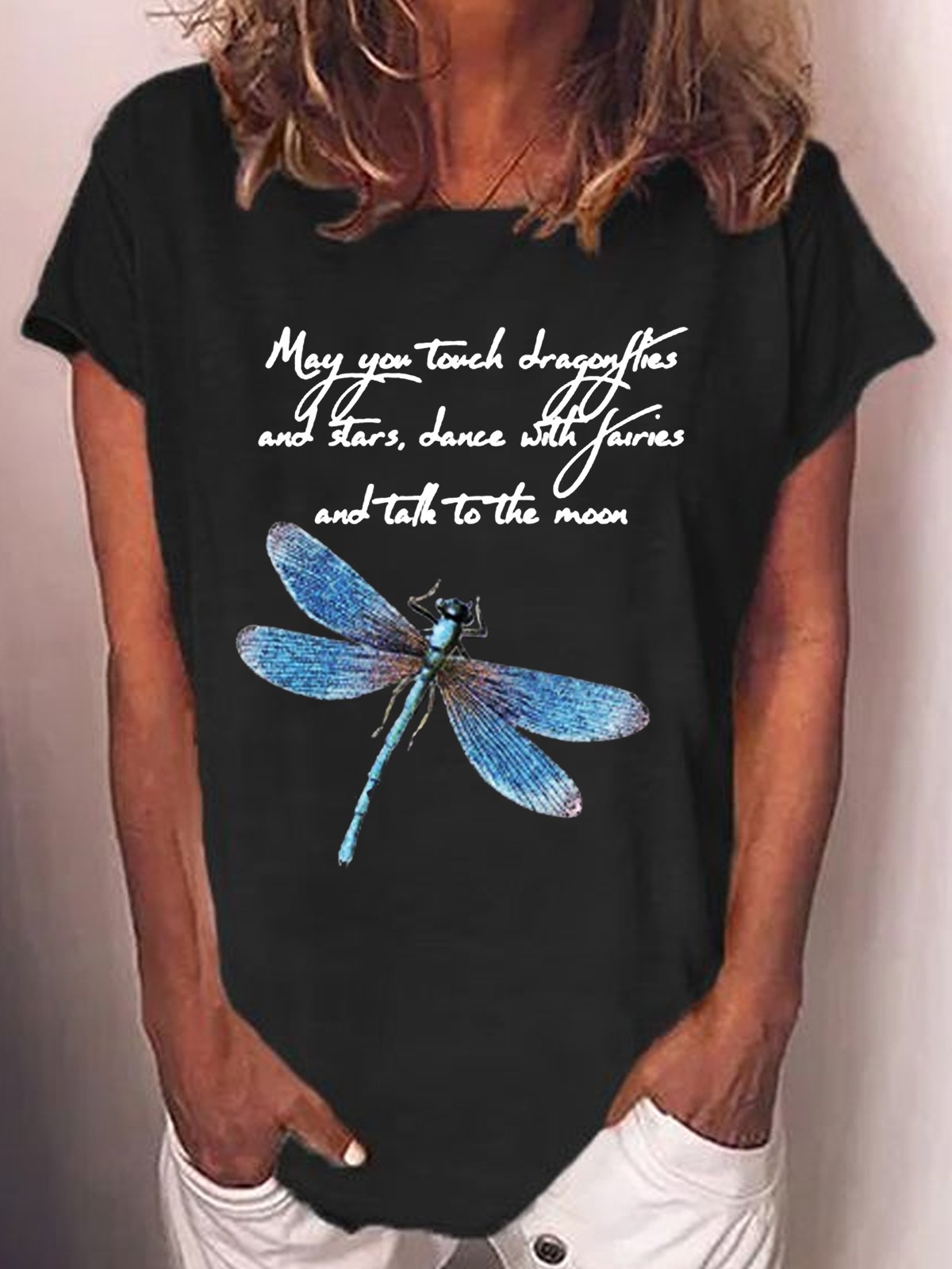 Womens Funny May You Touch Dragonflies Letter Printed Casual Short Sleeve T-Shirt
