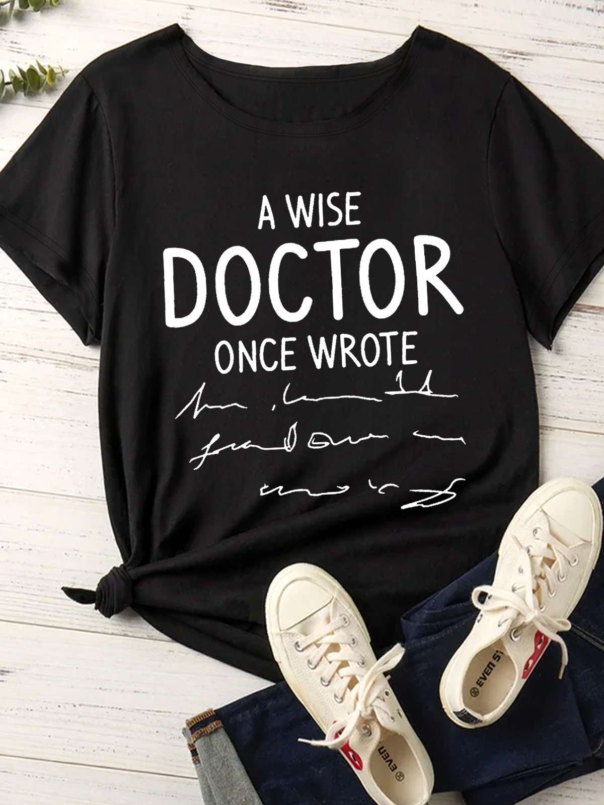 Women's Funny A Wise Doctor Once Wrote Crew Neck Letters Casual T-Shirt