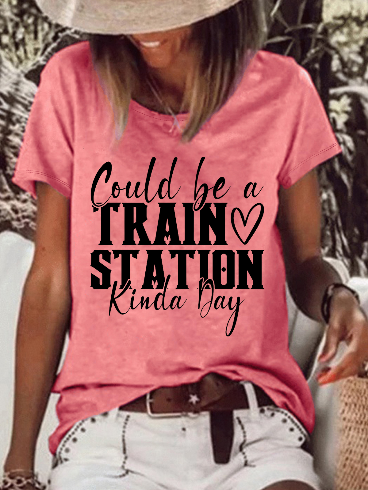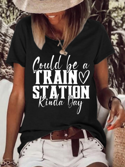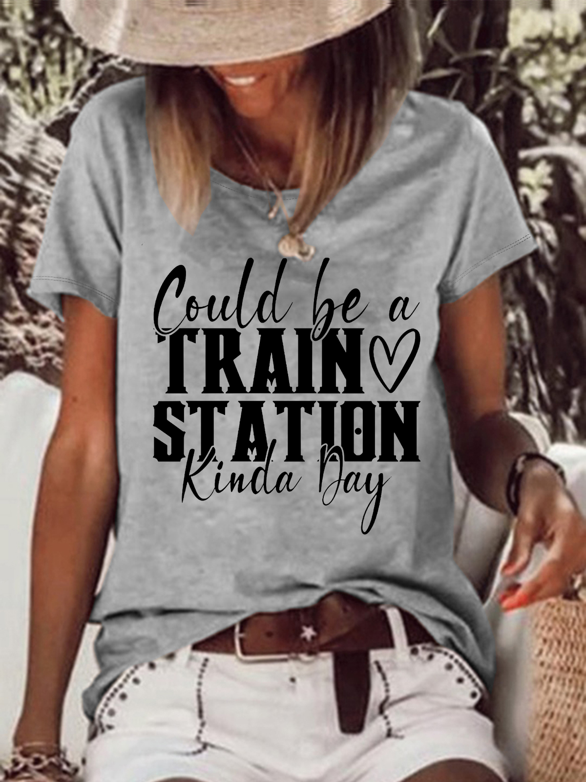 Women's Could Be A Train Station Kinda Day Graphic Casual Loose T-Shirt
