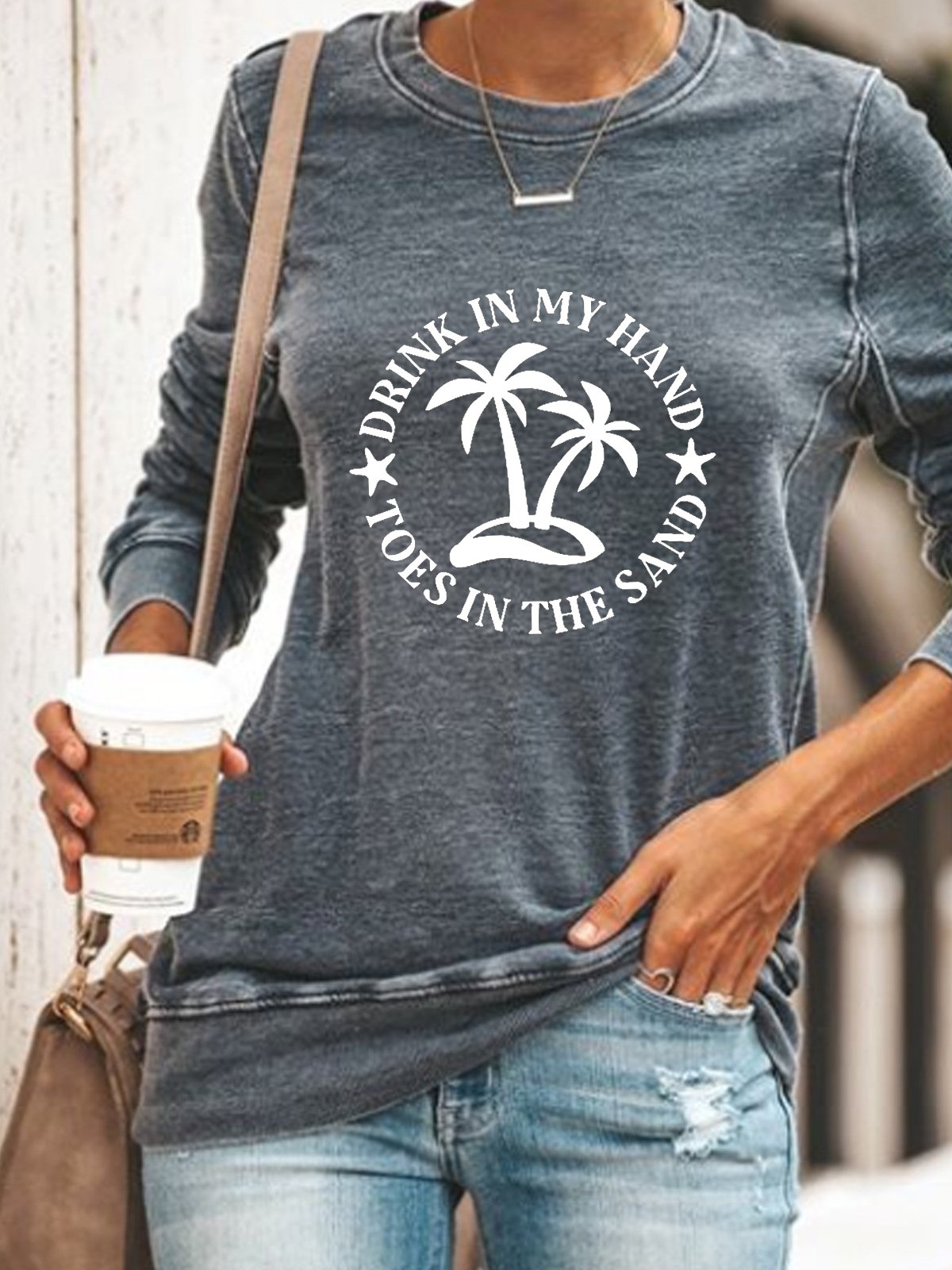 Drink In My Hand Toes In The Sand Casual Crew Neck Letter Sweatshirt