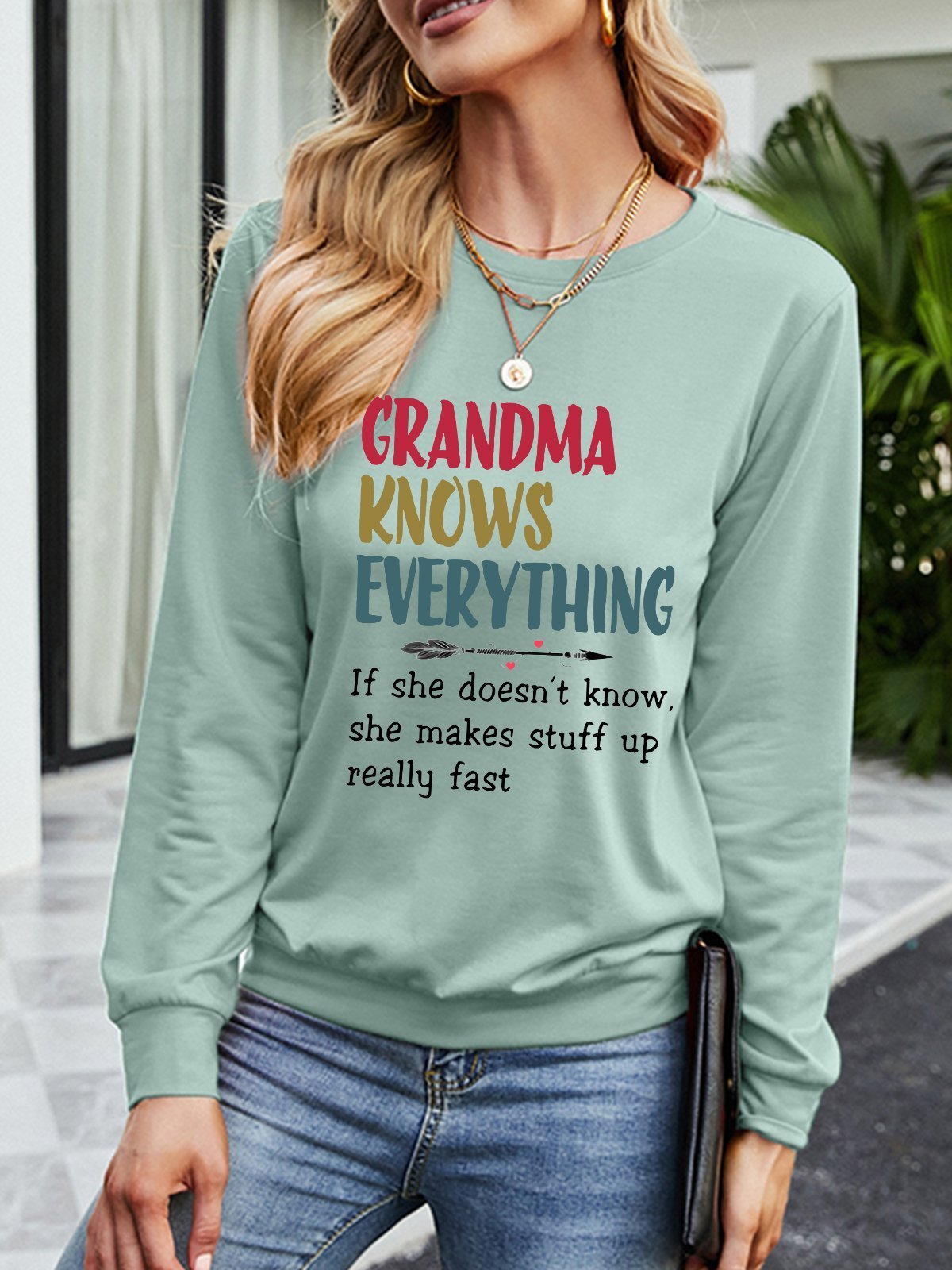 Grandma Knows Everything Women's Shift Short Sleeve Sweatshirts