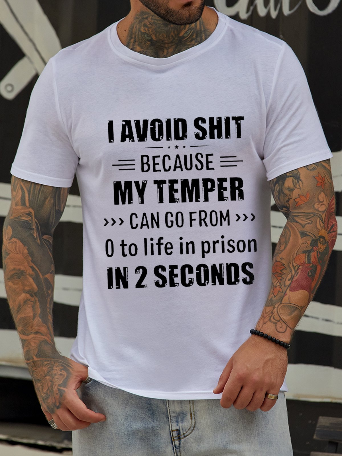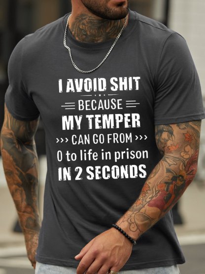 I Avoid Shit Because My Temper Can Go From 0 To Life In Prison In 2 Seconds Funny Short Sleeve Cotton Short Sleeve T-Shirt
