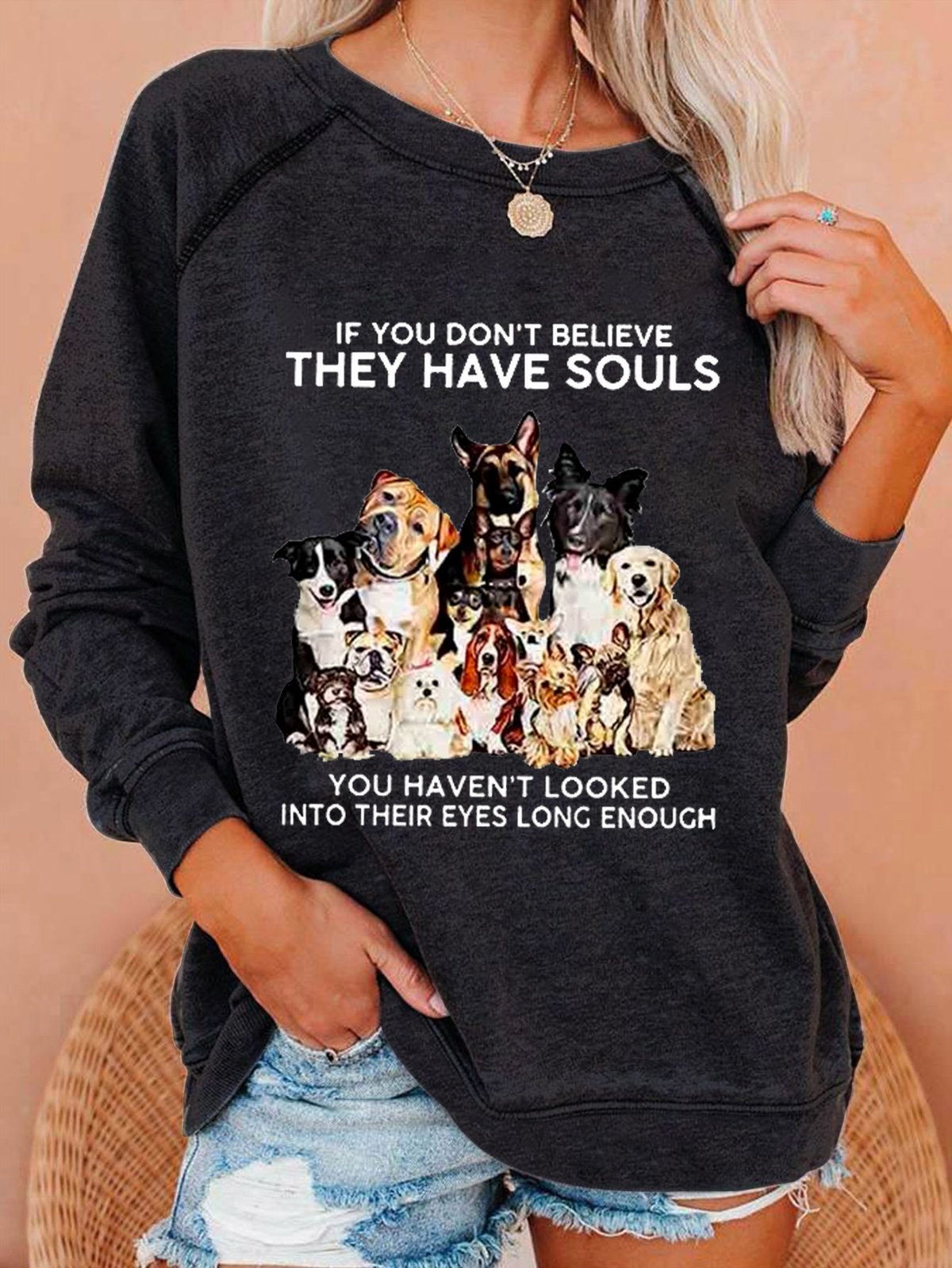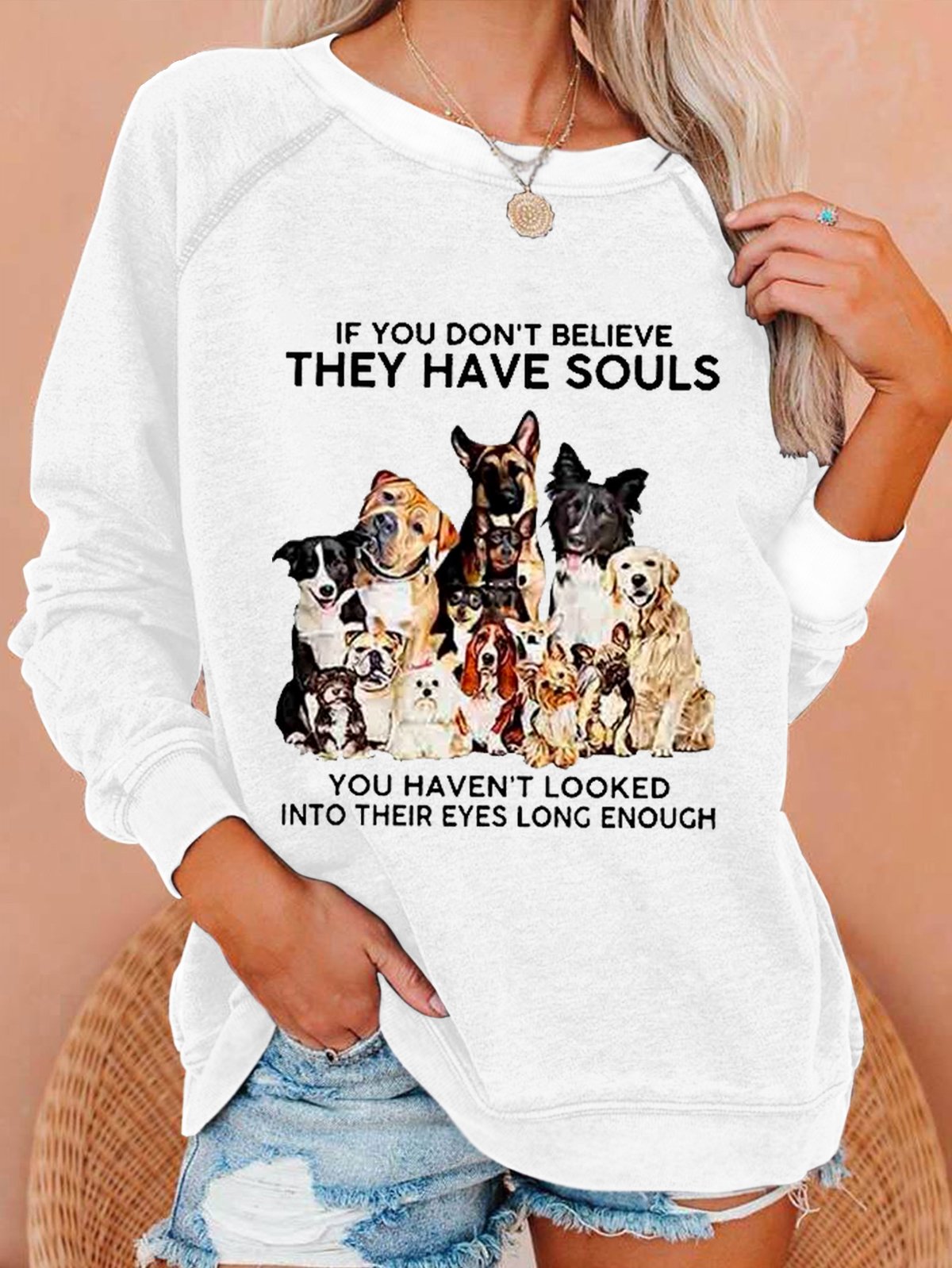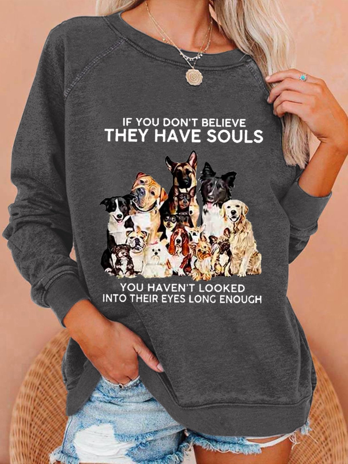 If You Don't Believe They Have Souls Dog Print Casual Sweatshirt