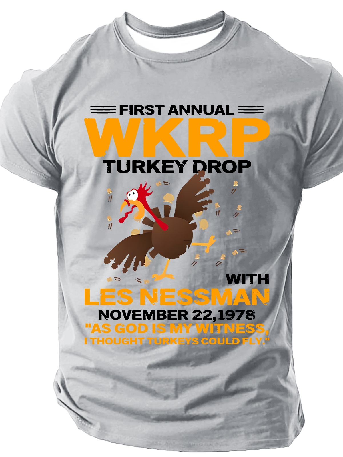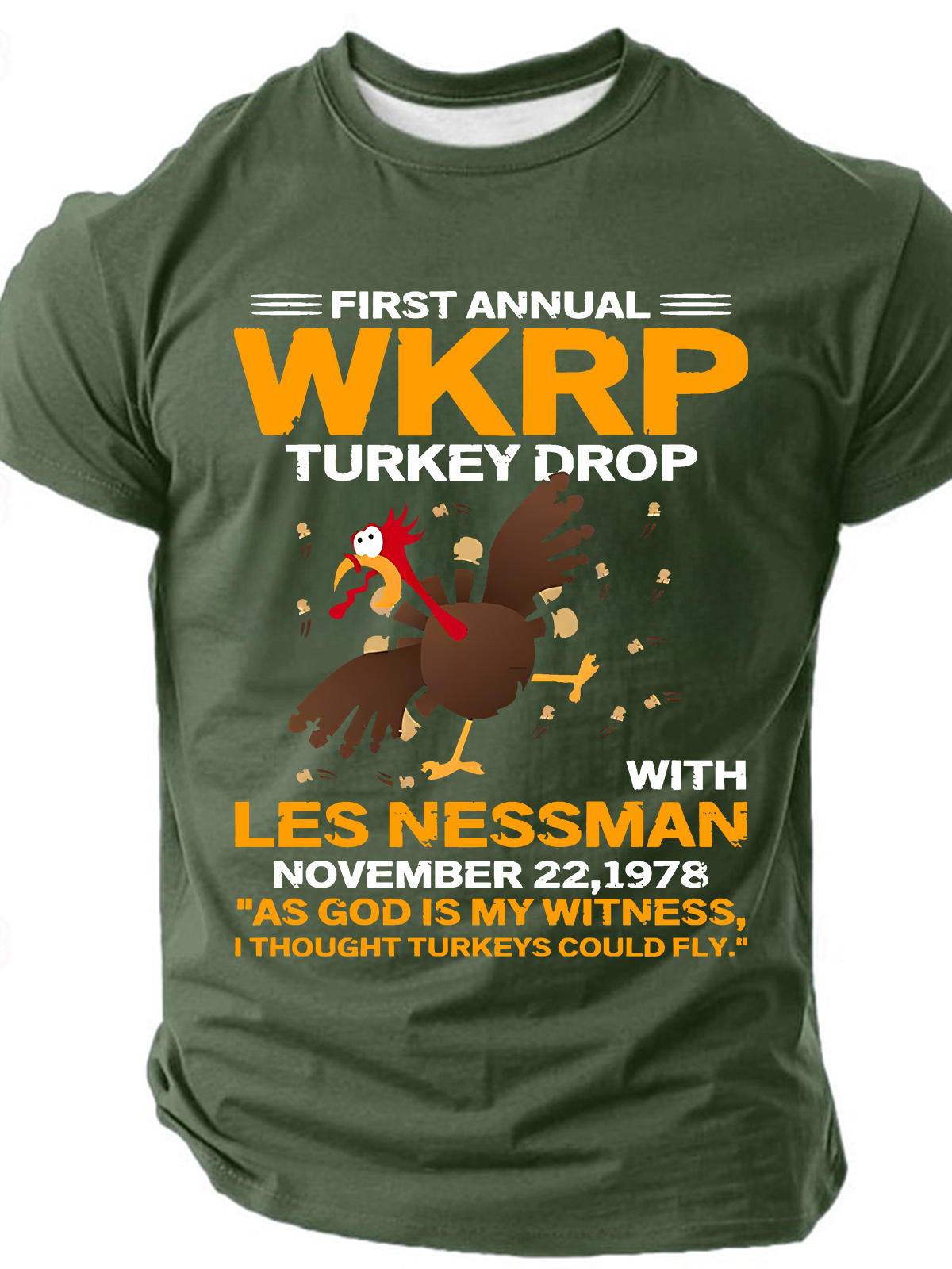 Men's First Annual Wkrp Turkey Drop Funny Short Sleeve T-shirt