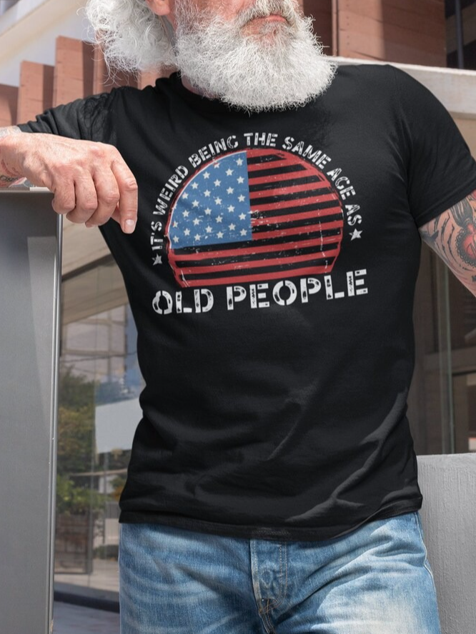 Men's Funny Old Prople Print Casual Short Sleeve T-Shirt