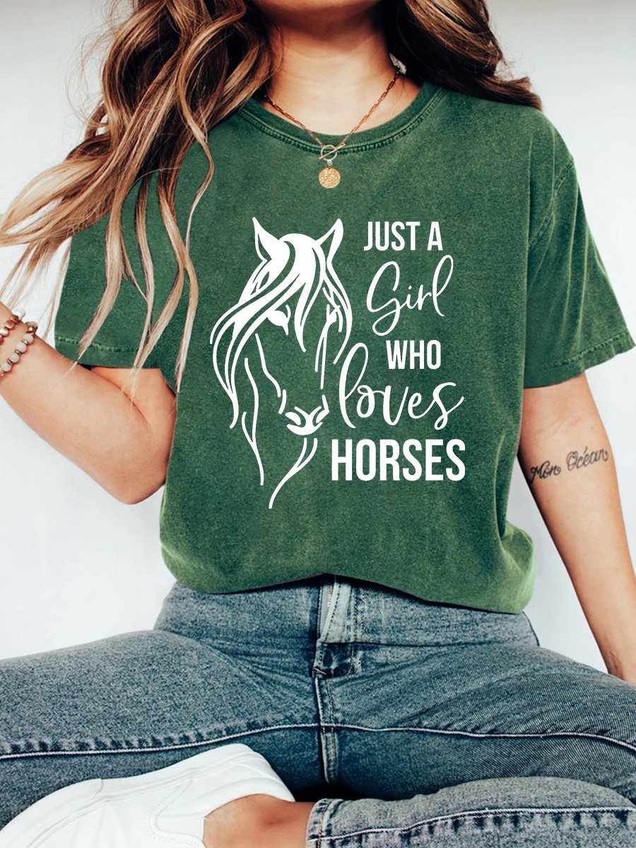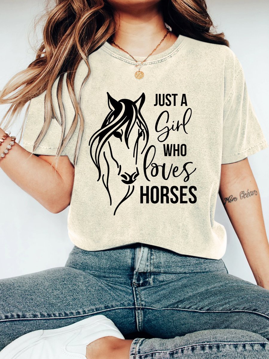 Women's Just A Girl Who Loves Horses Print Vintage Distressed Shirt
