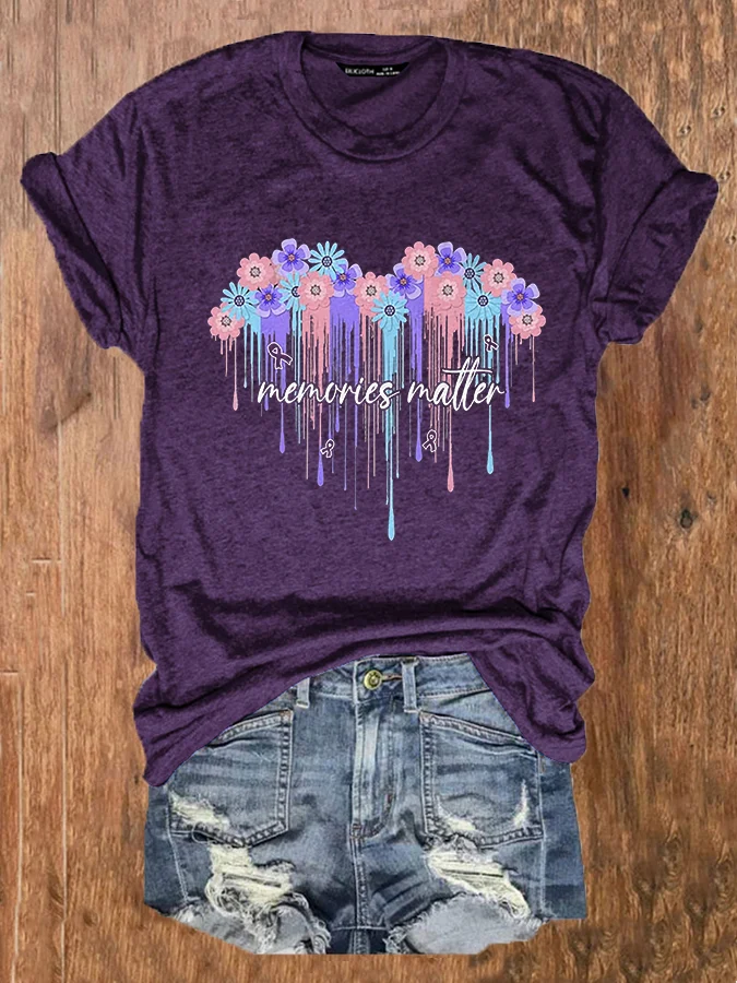 Women's Memories Matter End ALZ Alzheimer's Awareness Print T-Shirt