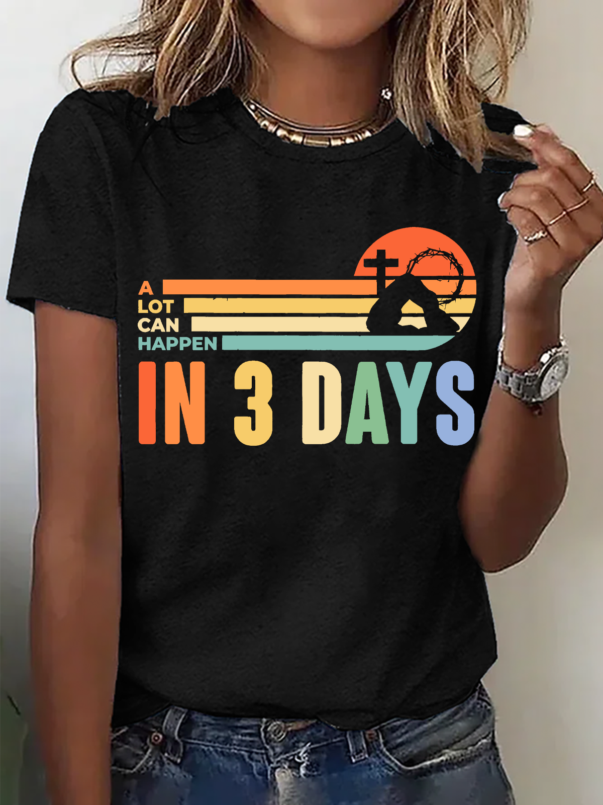 He Is Risen Easter Lamb Cross Christian Bible Verse Cotton T-Shirt
