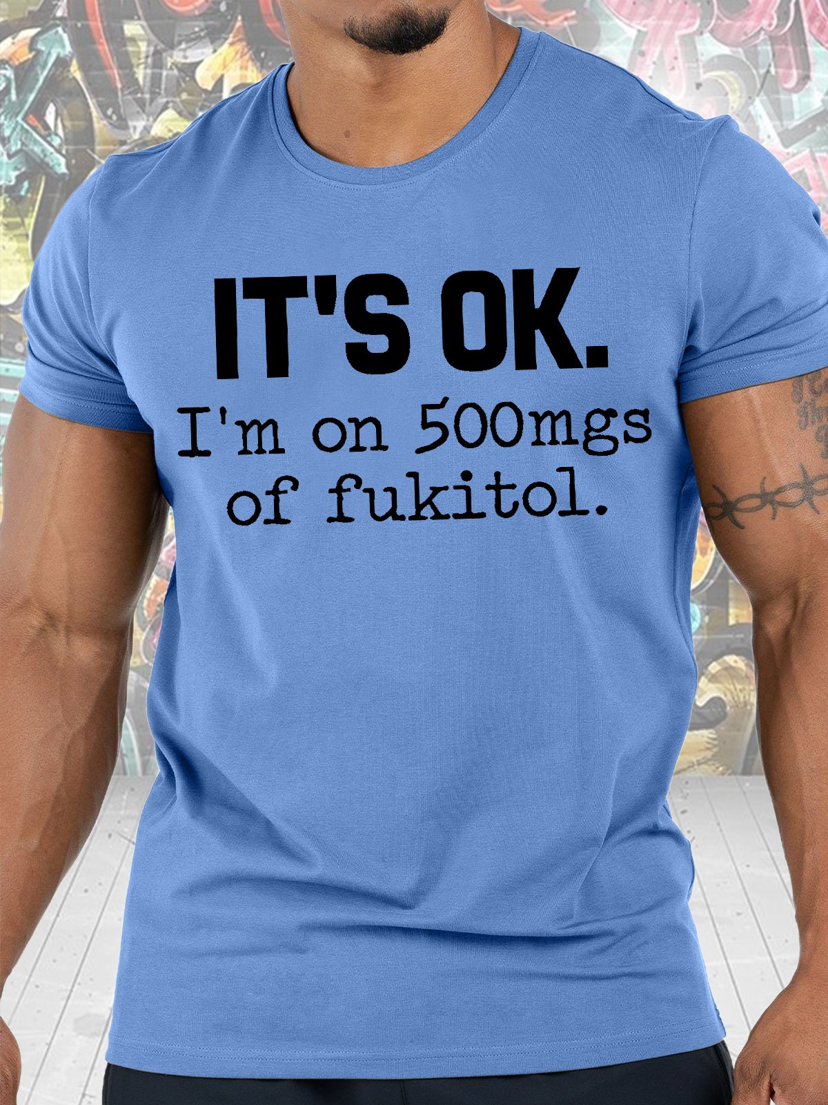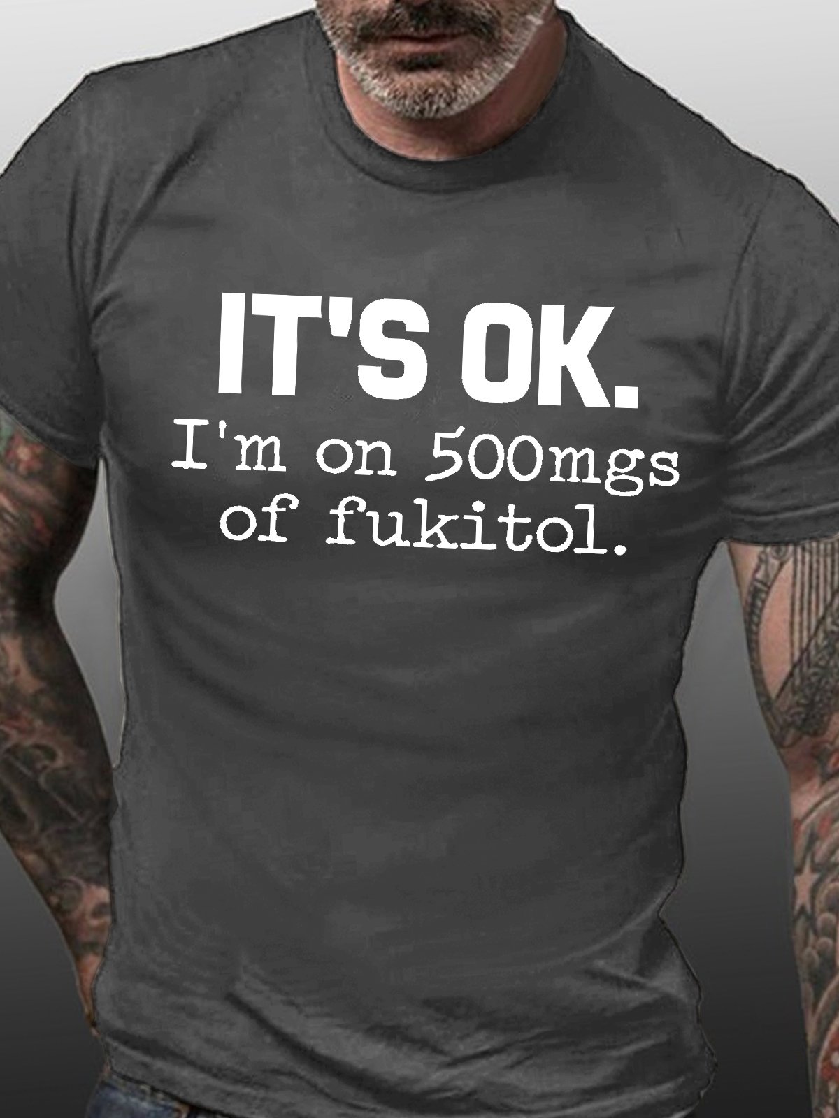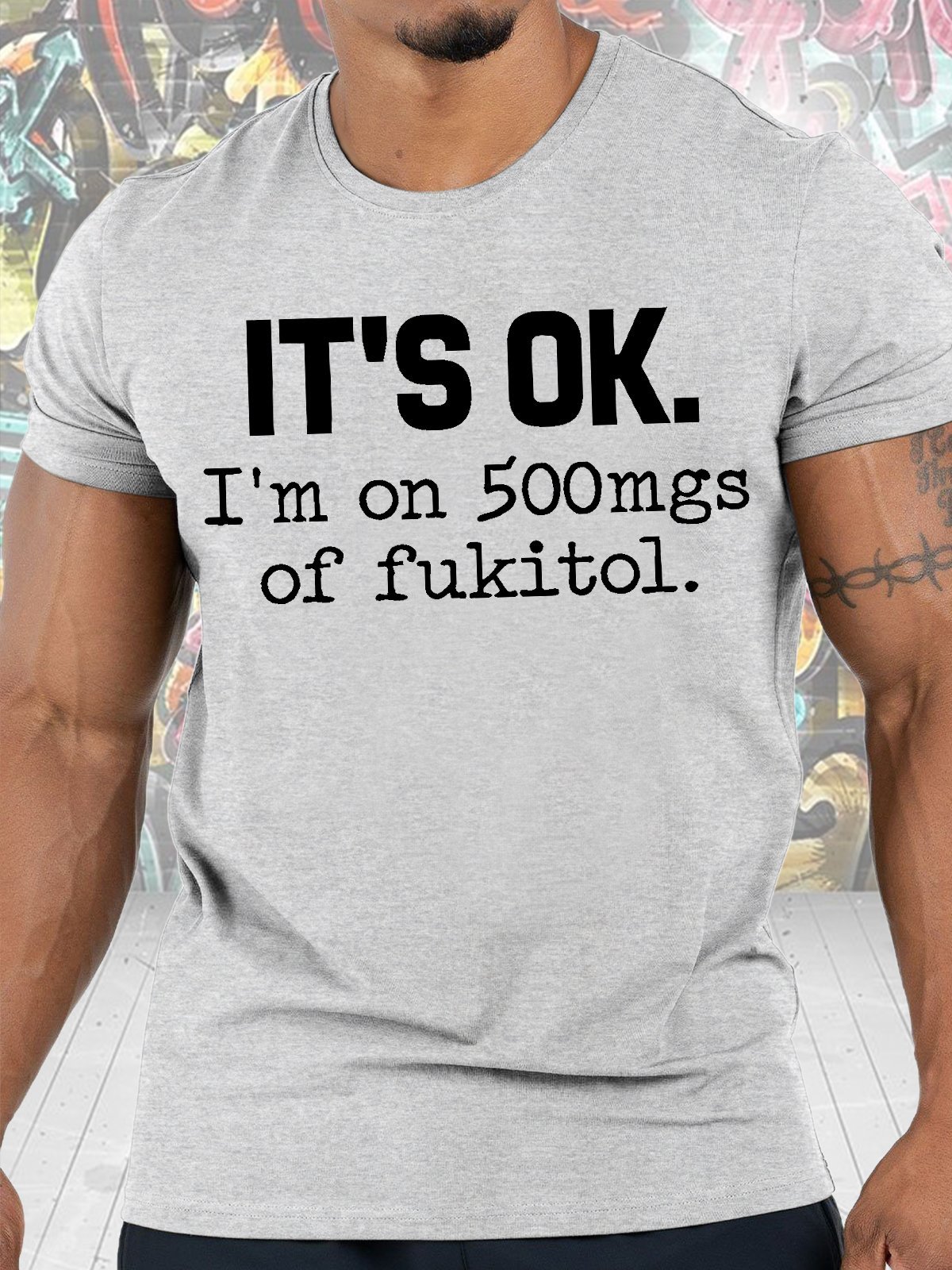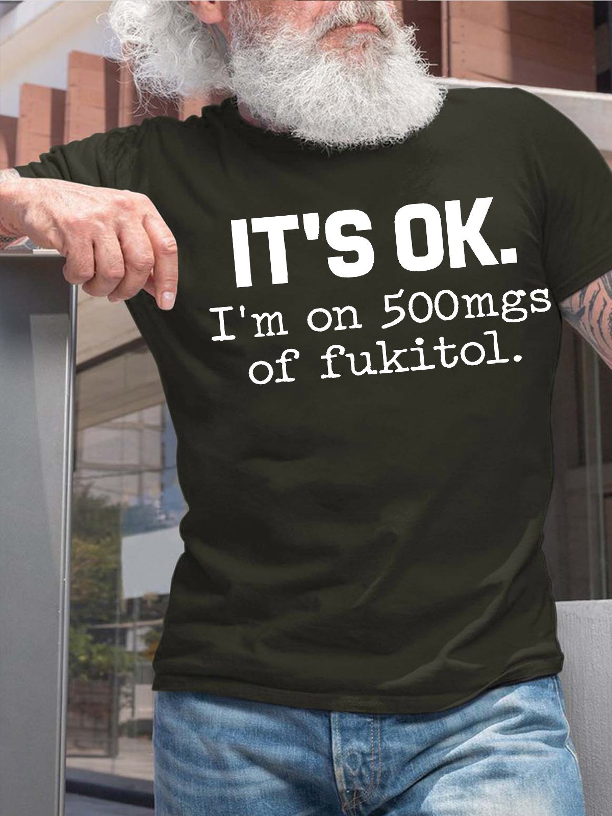 Mens It Is Ok I Am On 500mgs Of Fukitol Funny Graphic Print Casual Text Letters Cotton T-Shirt