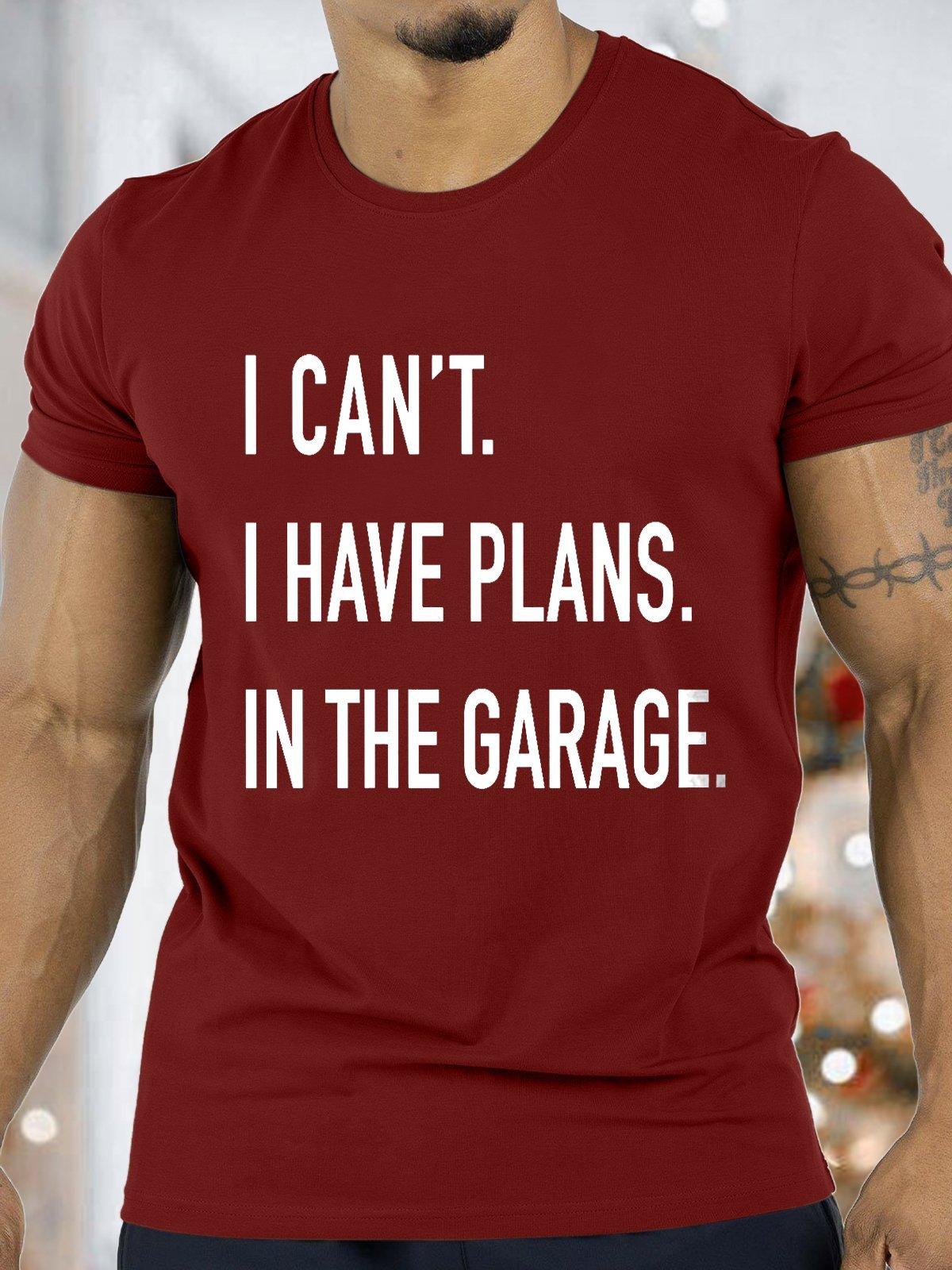 Men's I Can't I Have Plans In The Garage Funny Valentine's Day Graphics Print Casual Text Letters T-Shirt