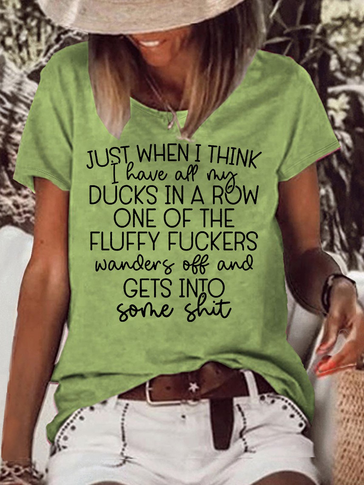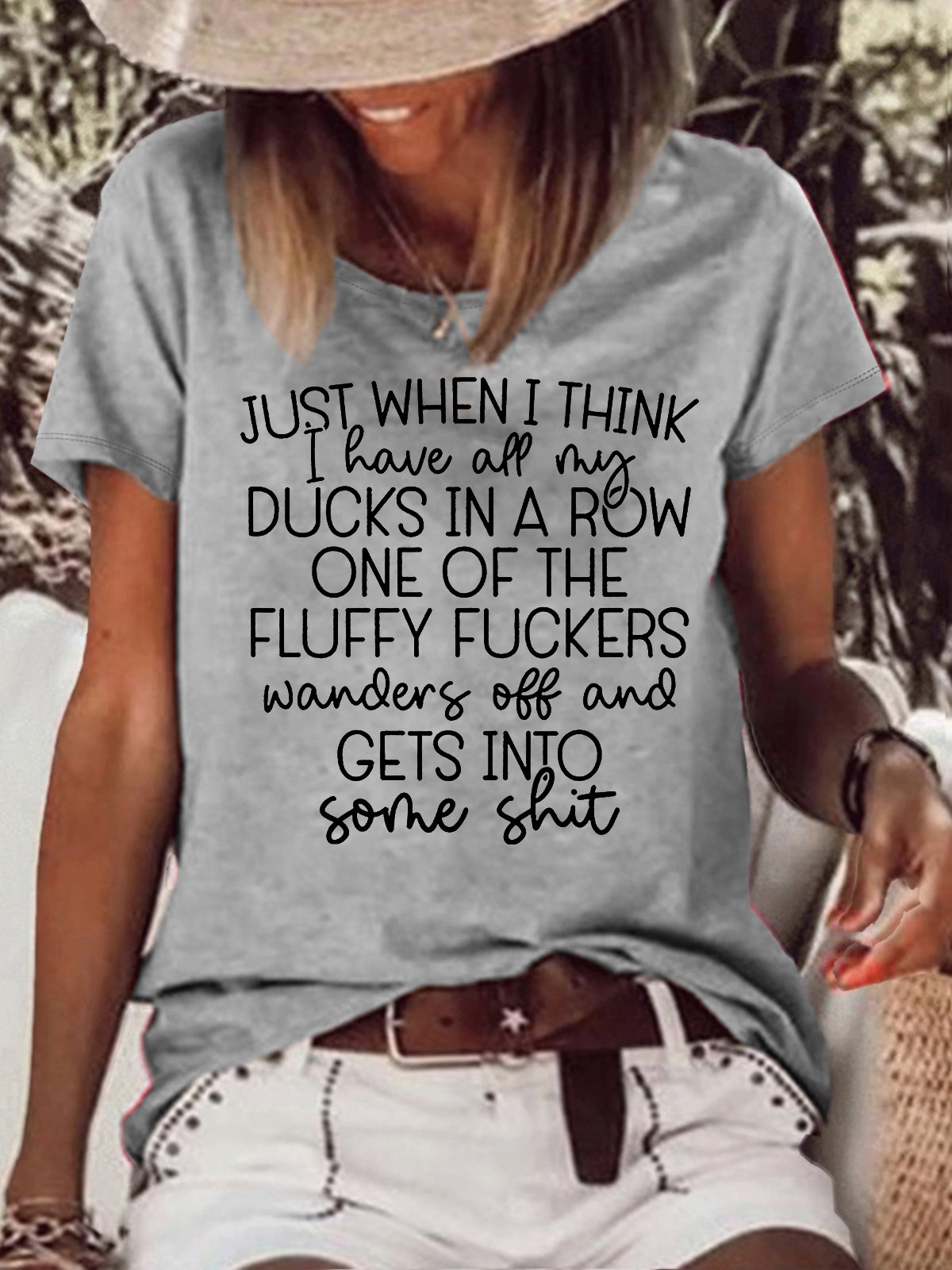 Women's Ducks In A Row Funny Letters Casual T-Shirt