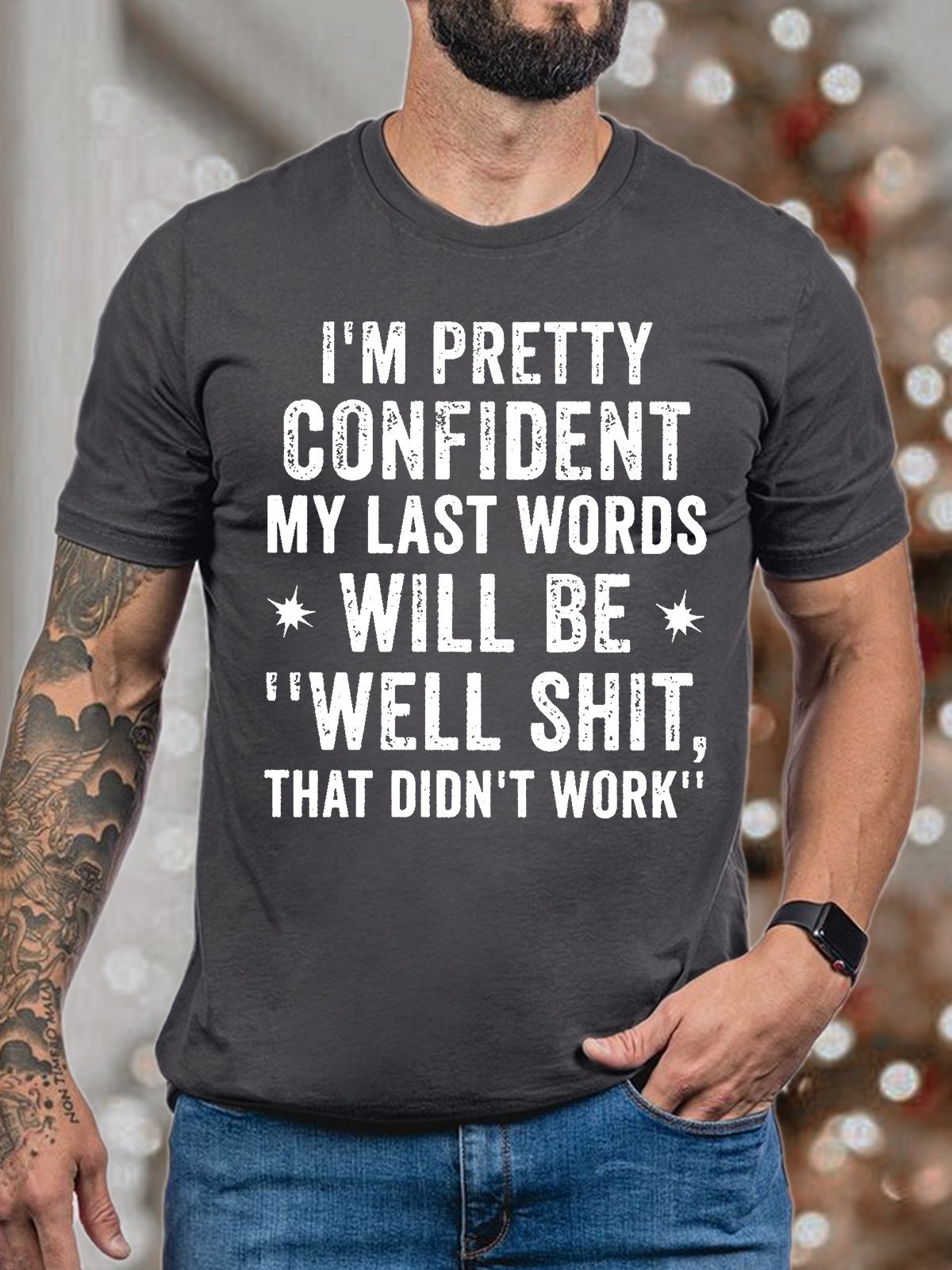 Men's I Am Pretty Confident My Last Words Will Be Funny Graphics Print Casual Loose Text Letters Crew Neck T-Shirt