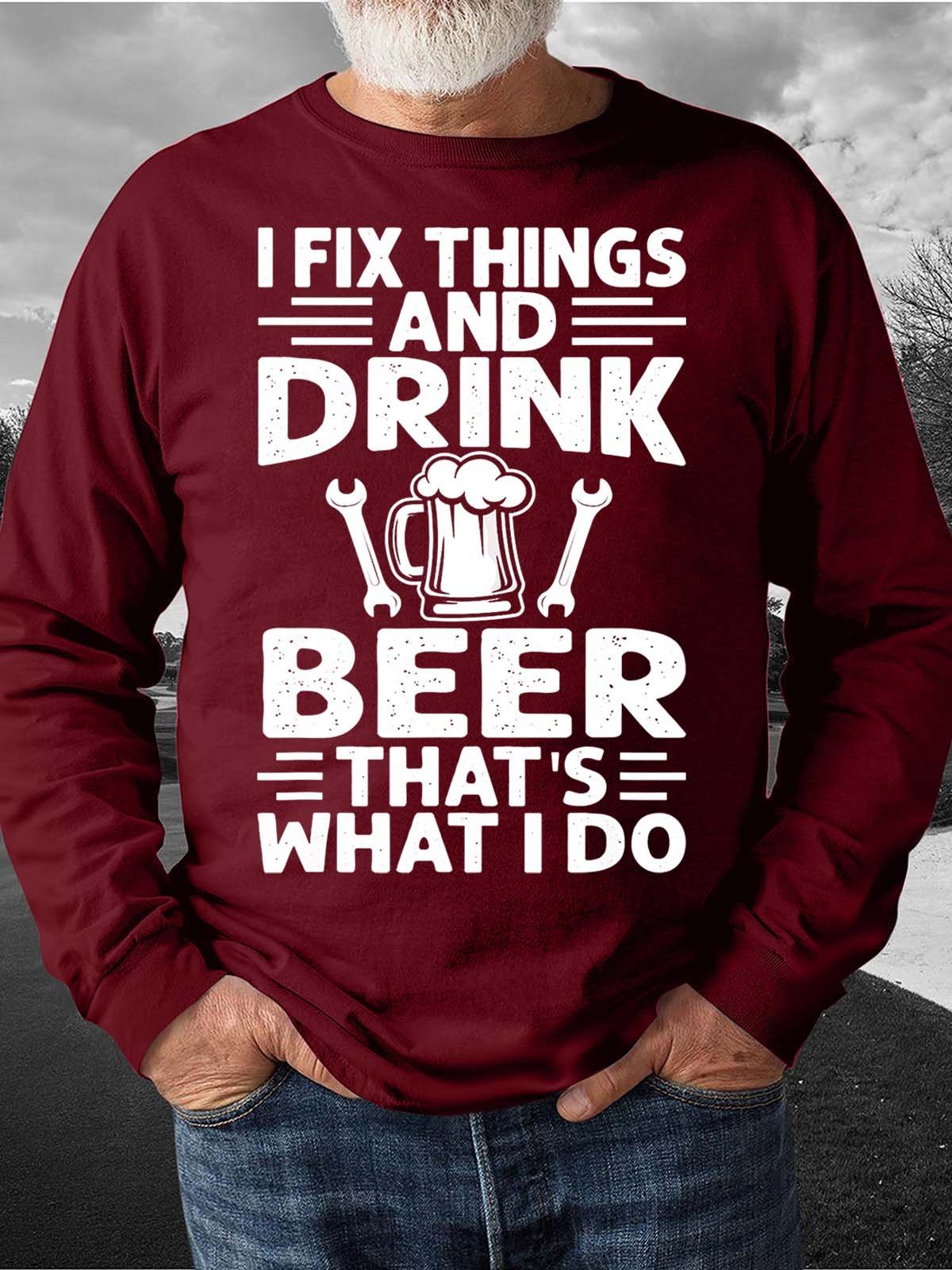 Men’s I Fix Things And Drink Beer That’s What I Do Text Letters Casual Crew Neck Sweatshirt