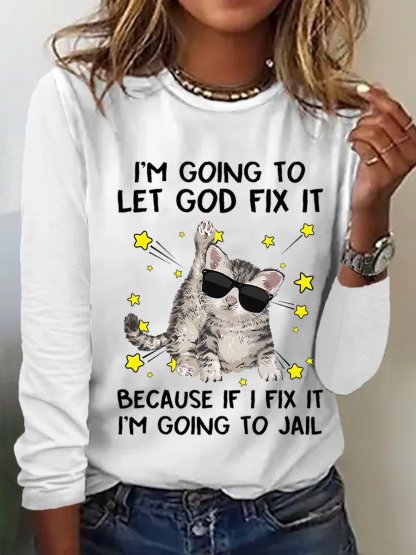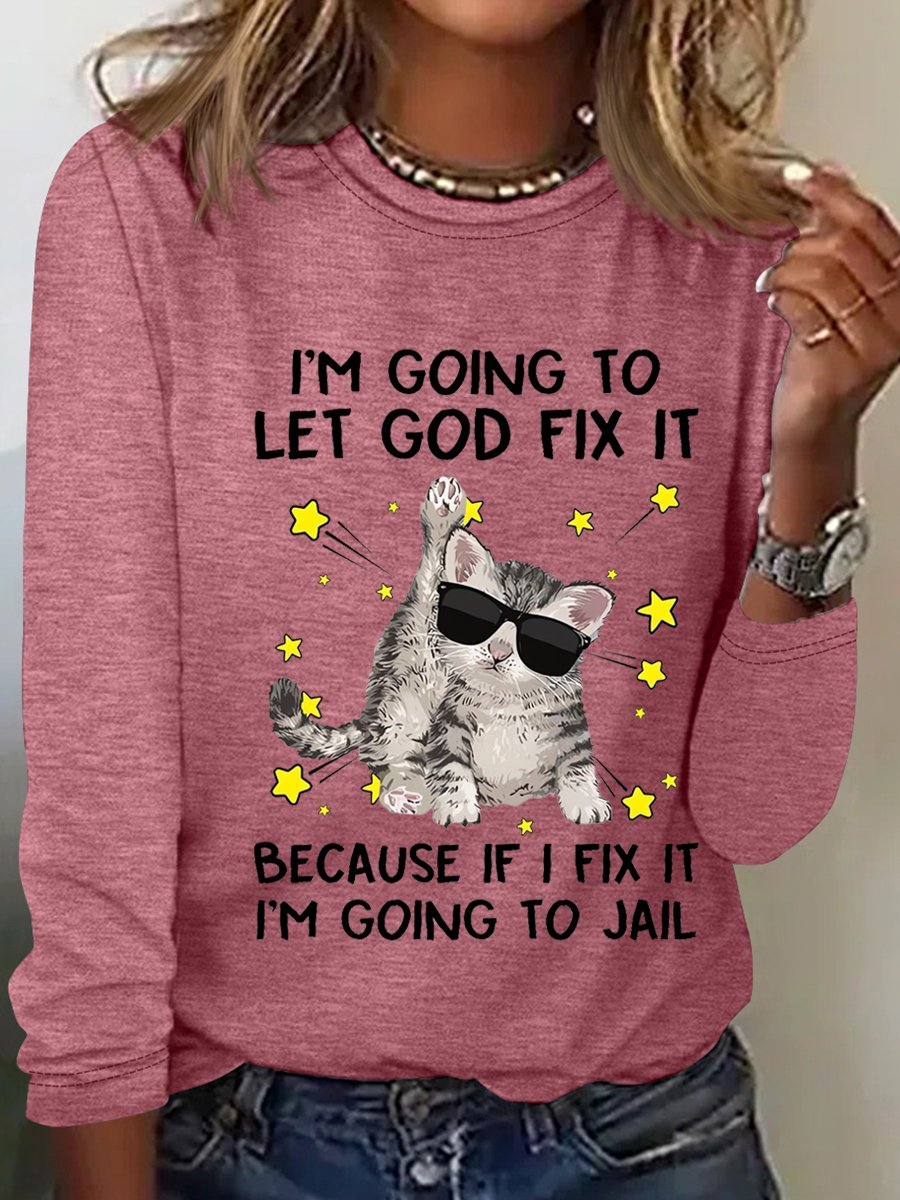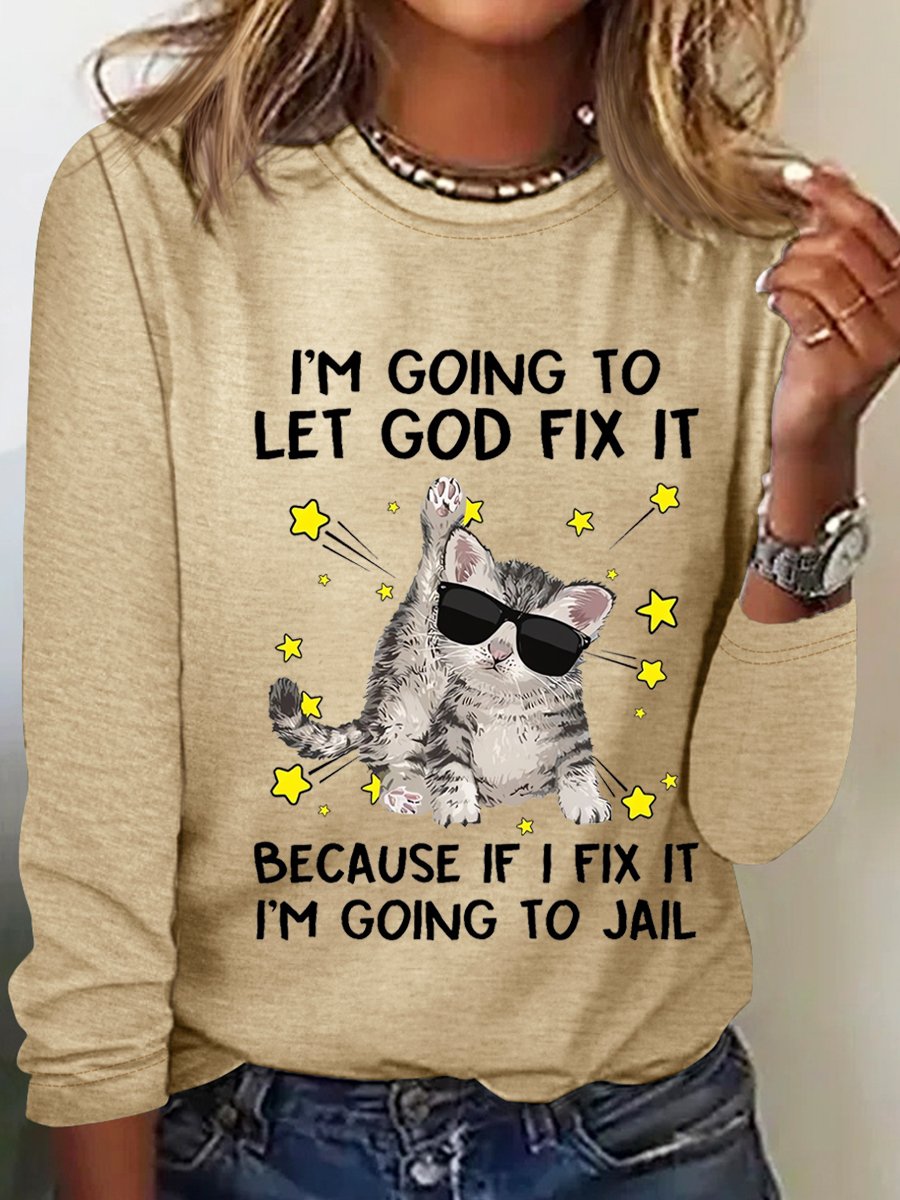 Women’s Funny Cat I‘m Going let god fix it Cotton-Blend Long Sleeve Top