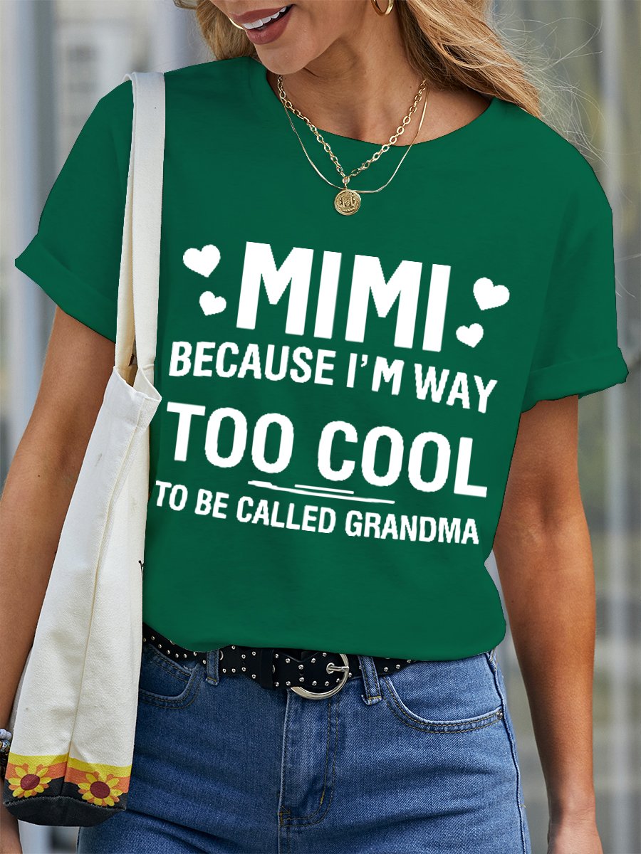 Women's MIMI Because I'M Way Too Cool To Be Called Grandma Funny Simple Loose Cotton T-Shirt