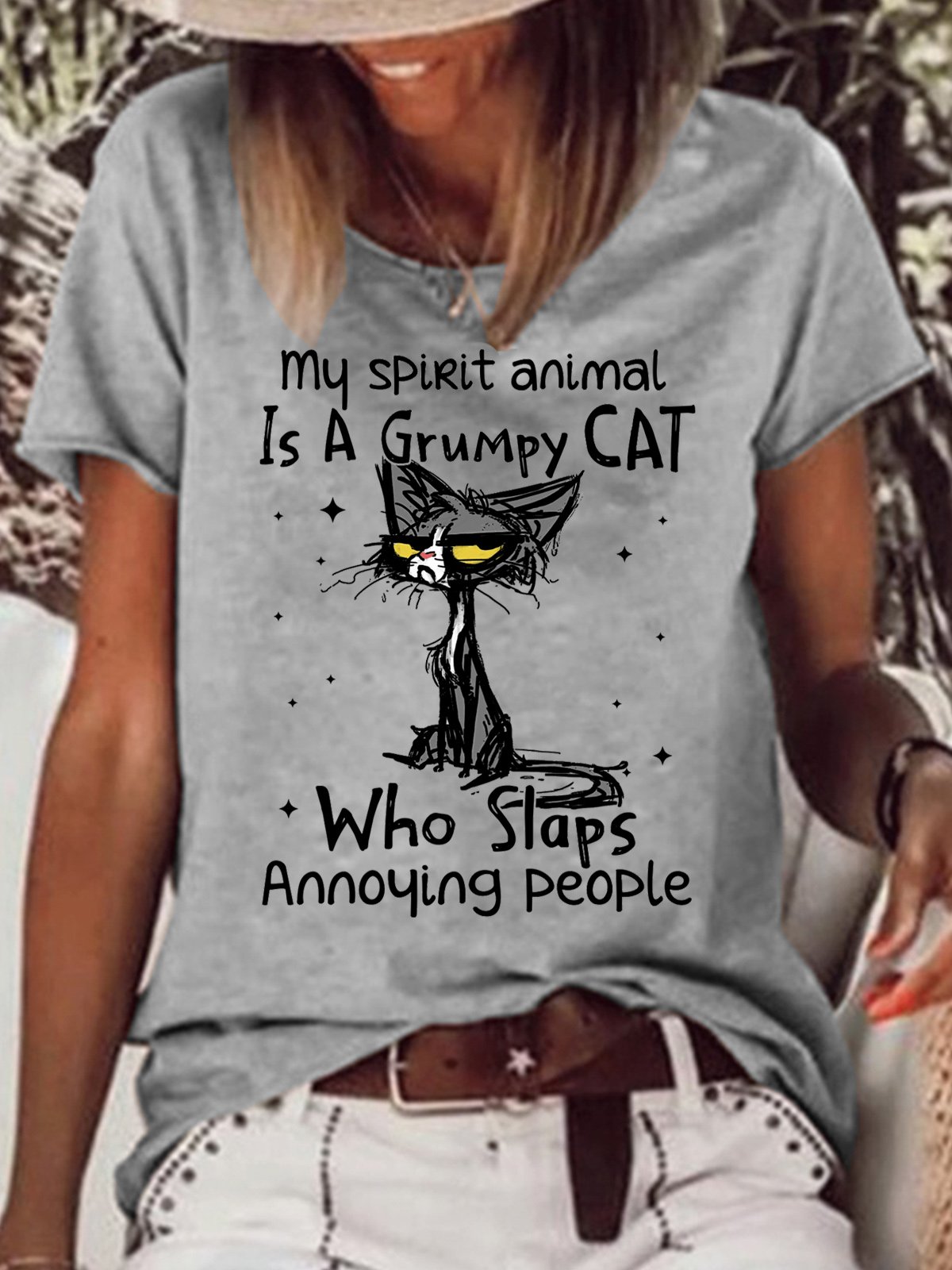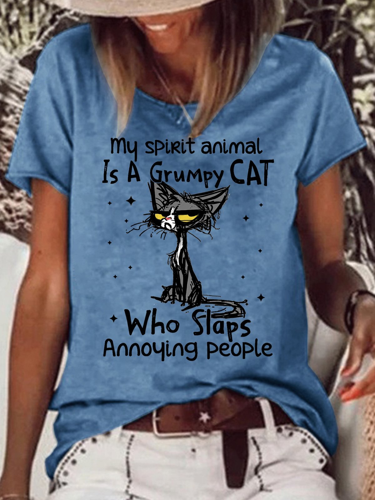 Womens Who Slaps Annoying People Cat Love Casual T-Shirt