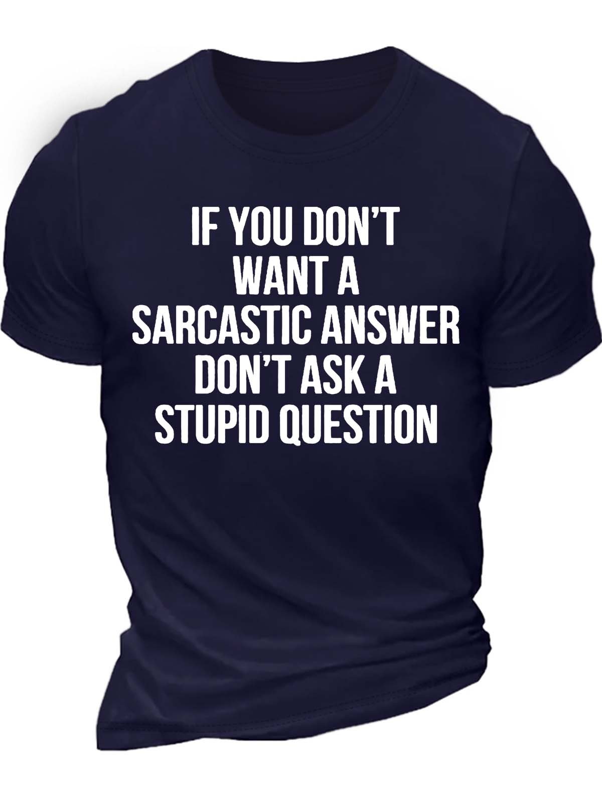 Men's If You Don't Want A Sarcastic Answer Don't Ask A Stupid Question Funny Graphic Print Cotton Casual Text Letters T-Shirt