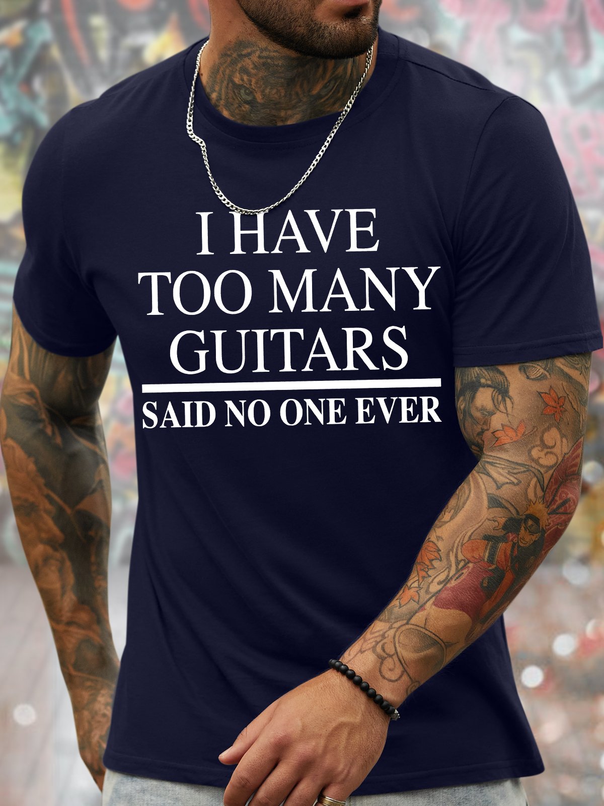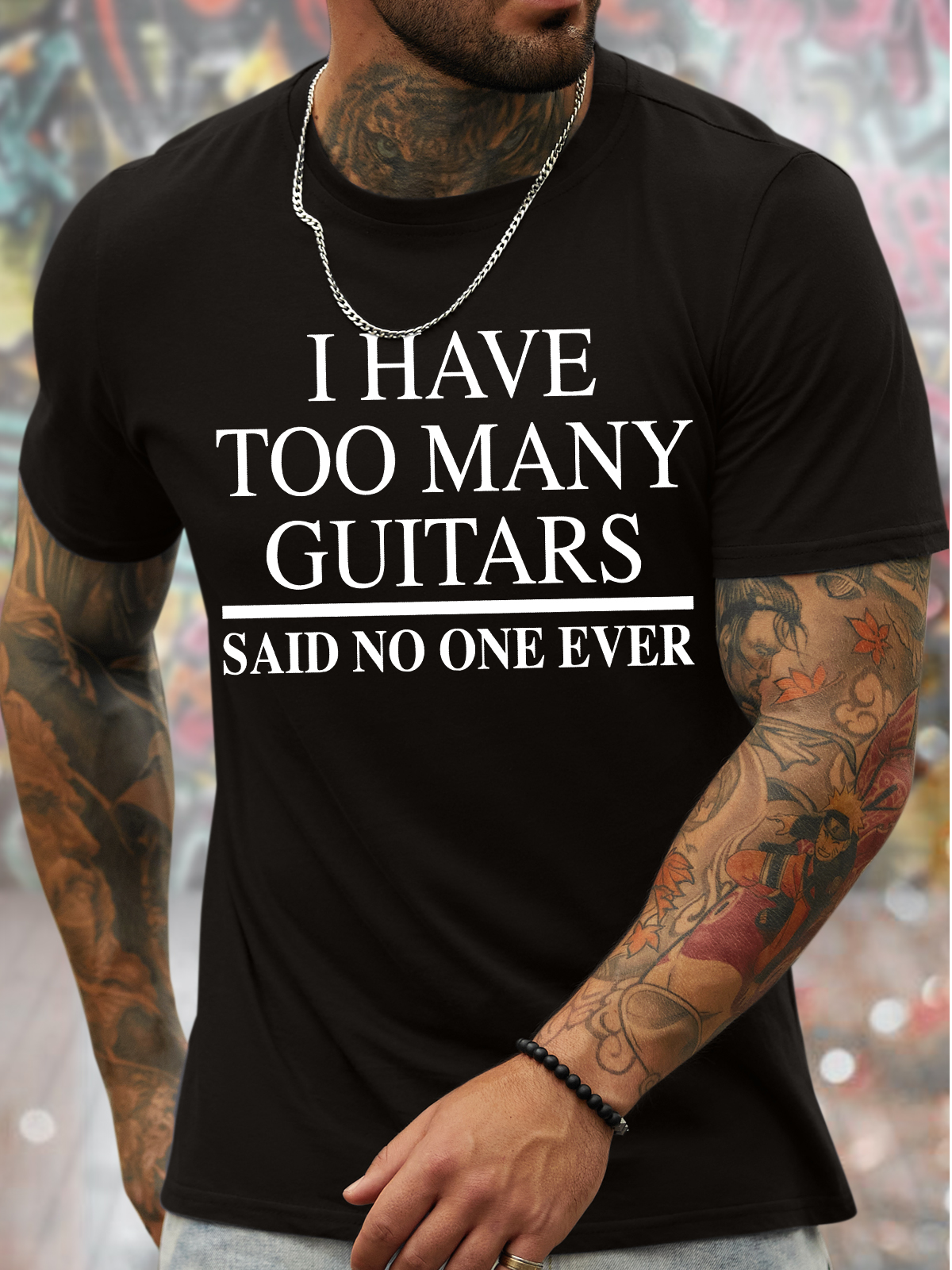 Men's I Have Too Many Guitars Said No One Ever Funny Love Music Graphic Print Crew Neck Cotton Casual Text Letters T-Shirt