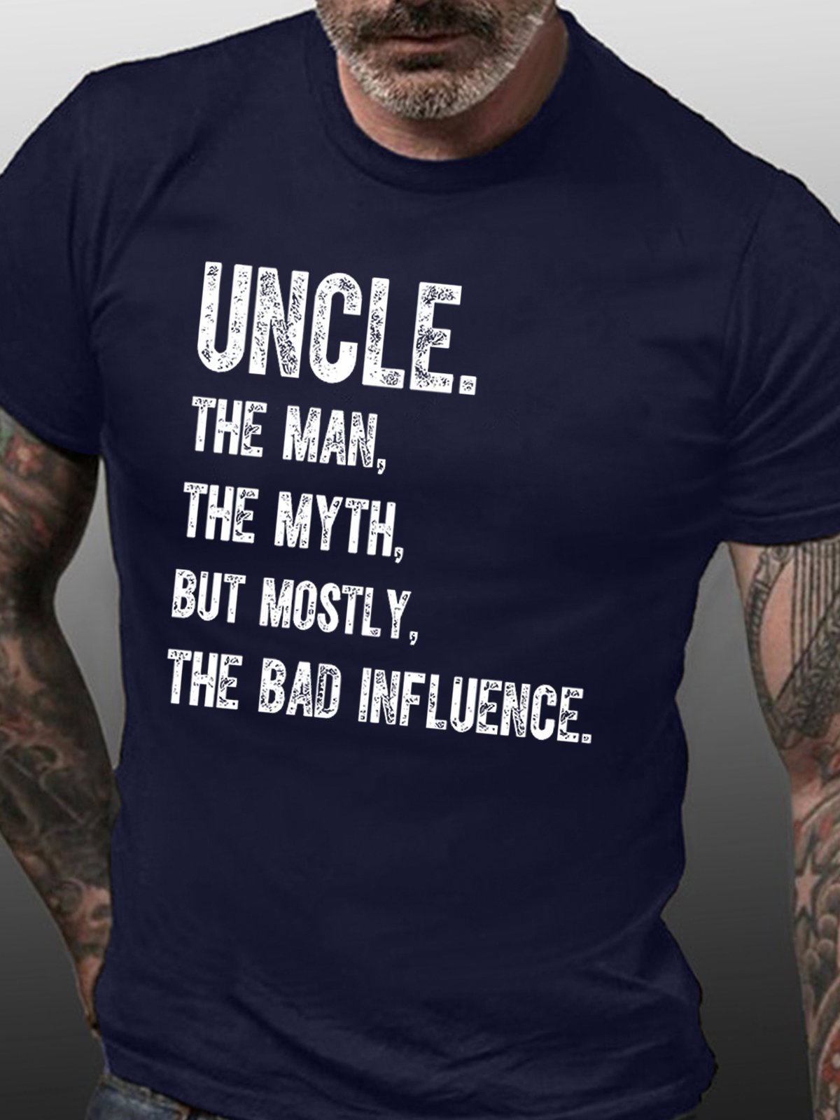 Men's Uncle The Man The Myth But Mostly The Bad Influence Funny Graphic Print Casual Cotton Text Letters Loose T-Shirt