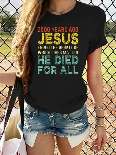 2000 Years Ago Jesus... Print Crew Neck Short sleeve tops