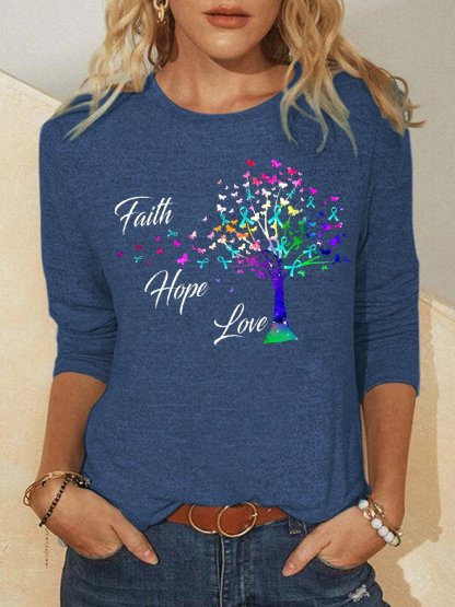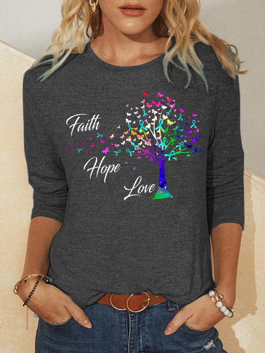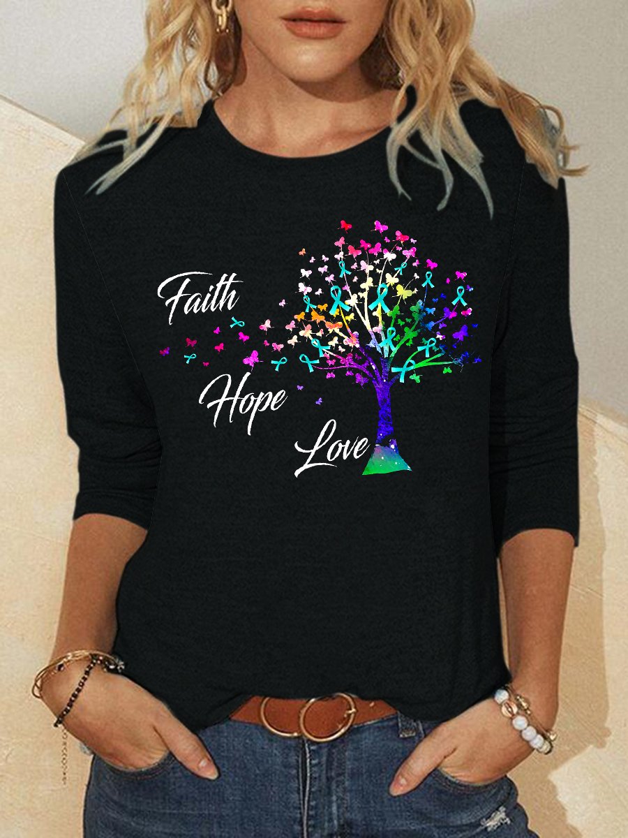 Faith hope love round neck long sleeve shirt