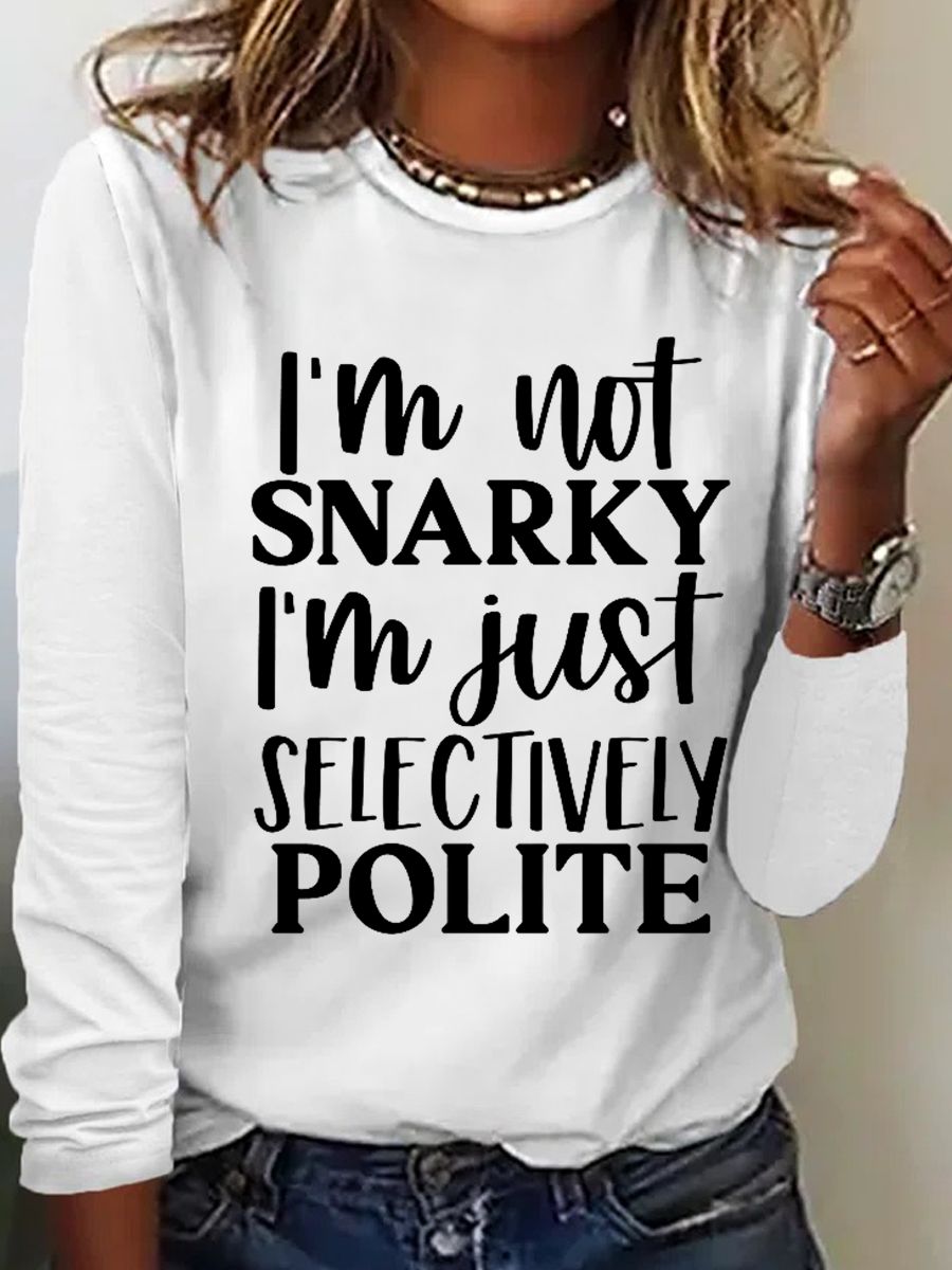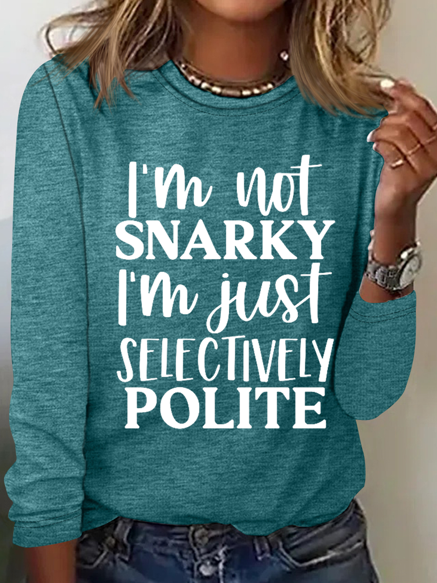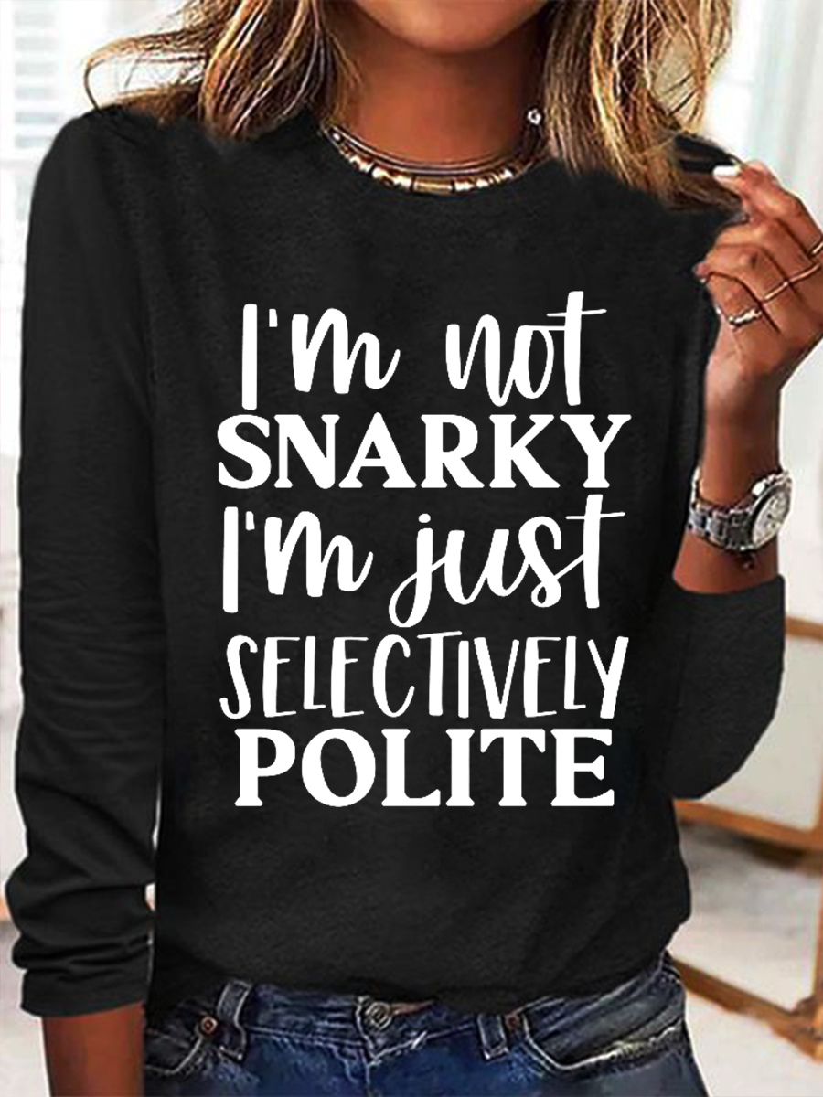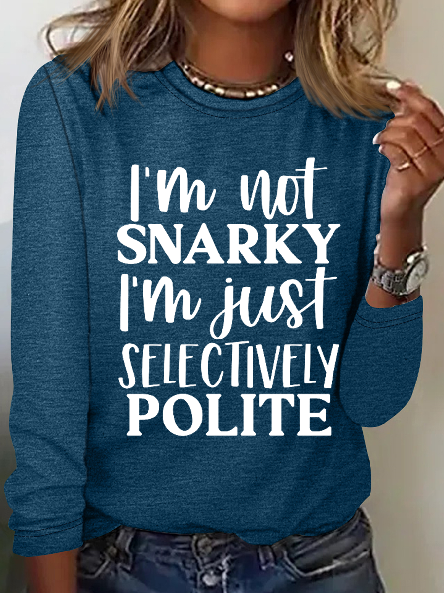 I'm Not Snarky I'm Just Selectively Polite Cotton-Blend Simple Long Sleeve Shirt