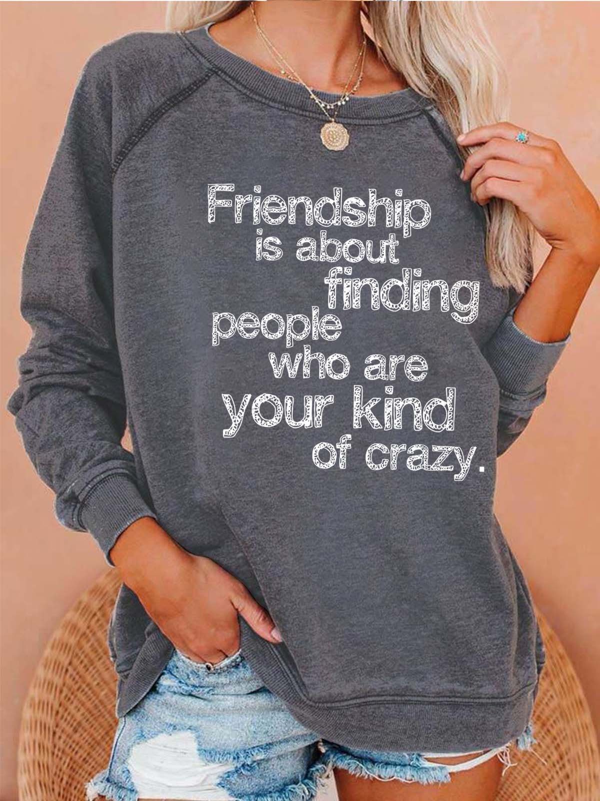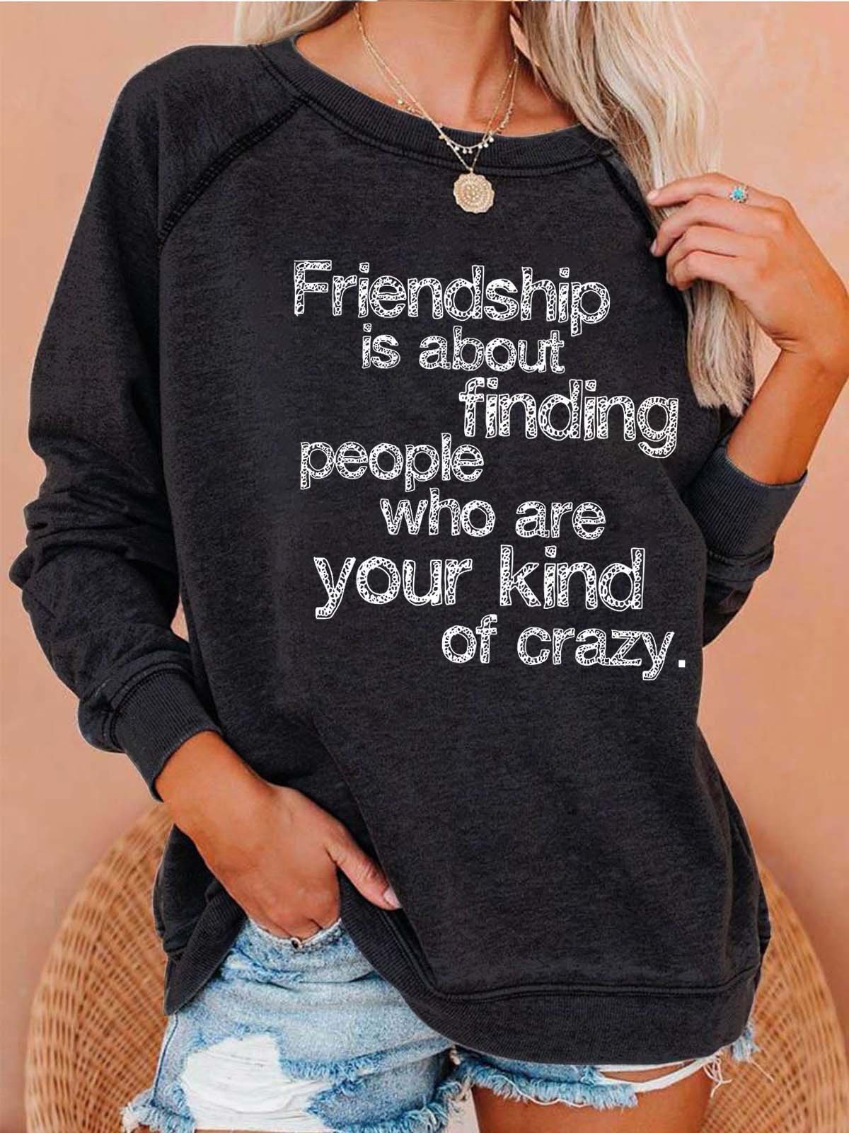 Women Friendship Letters Graphic Casual Crew Neck Cotton Sweatshirts