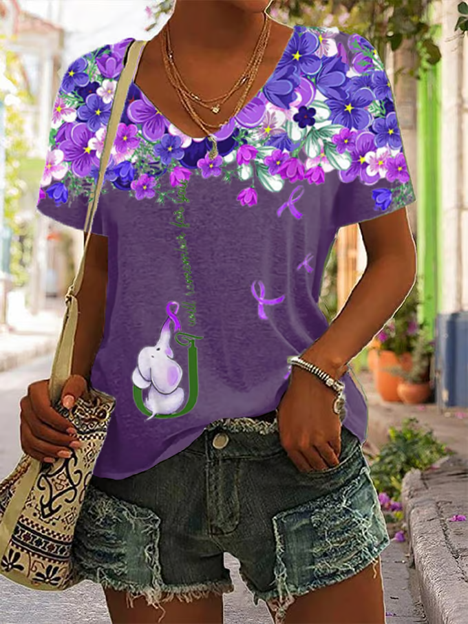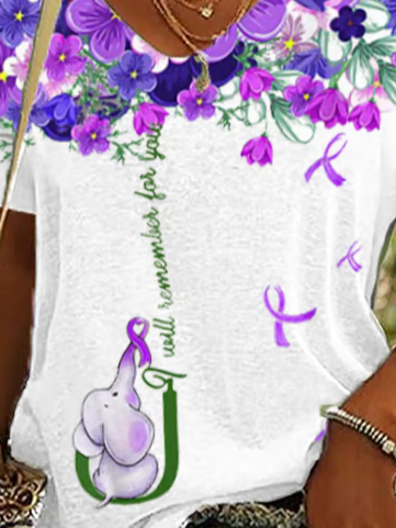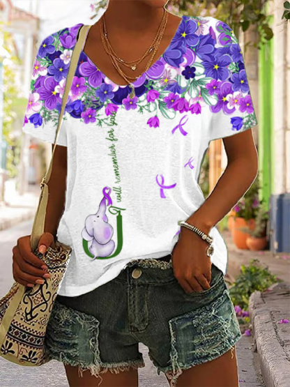 Women's I'll Remember For You Alzheimer's Disease Awareness Dementia Print V-Neck T-Shirt